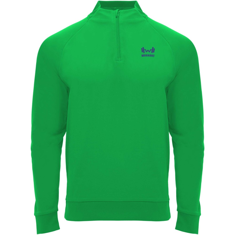 Technikai anyag. Raglán ujjak. Belül bolyhos anyag. Negyedcipzár azonos színű megerősített, fedett öltésekkel. Bordázott nyak-, ujj- és aljpasszé. Eltávolítható címke. Emblémázás: Hímzés, Szitanyomás