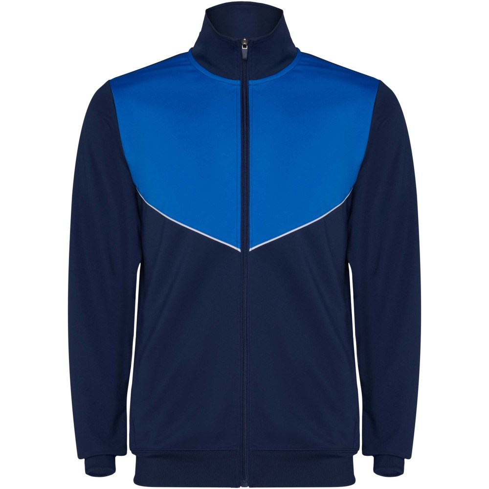 Könnyű és rugalmas anyagból készült melegítő. A végig cipzáros felső kontrasztos színű és varrású díszítésekkel dekorált a mellrészen. Oldalzsebek. Bordázott ujj- és és derékpasszé. Nadrág gumis derékkal és húzózsinórral, kontrasztos oldalsó varrással. Cipzáras szegély. Emblémázás: Hímzés, Szitanyomás