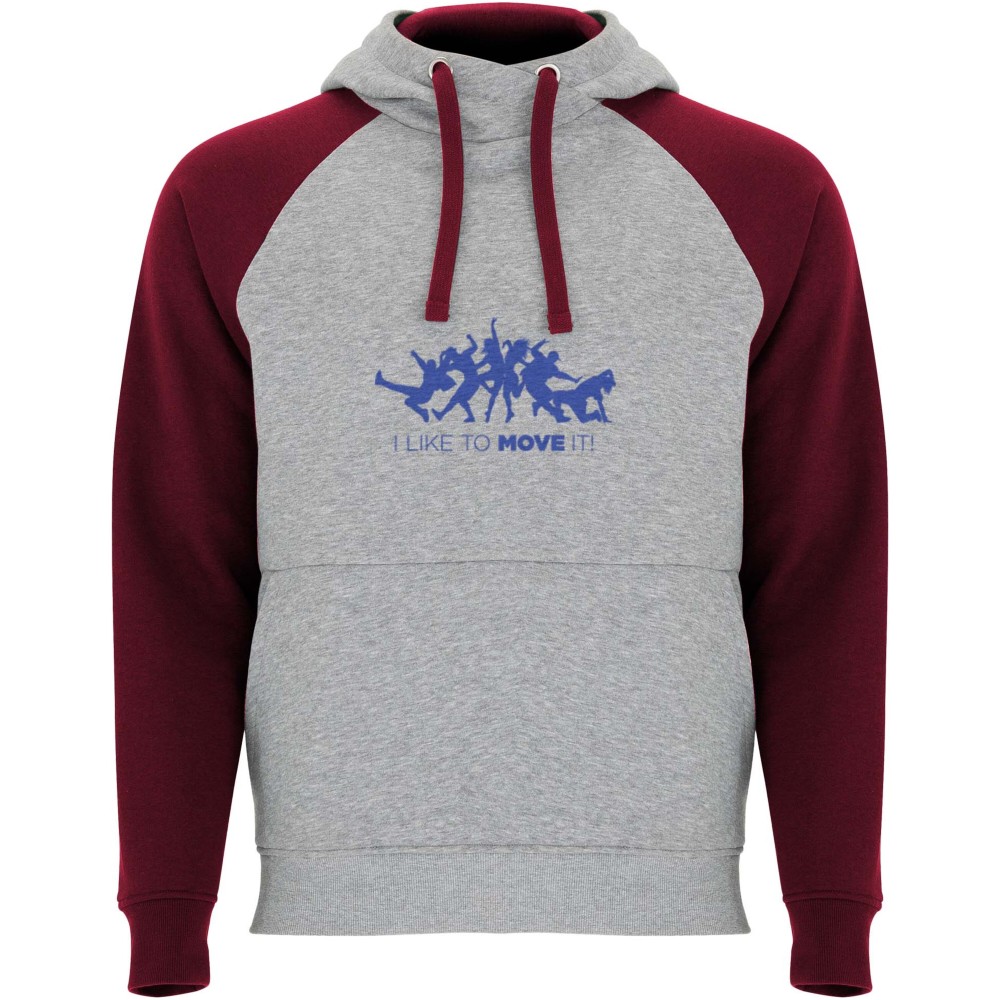 Két színű uniszex kapucnis pulóver. Kapucni keresztezett nyakrésszel és fém kiegészítőkkel. Kontrasztos belső rész a kapucnin, húzózsinór és raglán ujjak. Kenguru zseb. Rugalmas 1x1 passzék és alj. Levehető címke. Emblémázás: Hímzés, Szitanyomás
