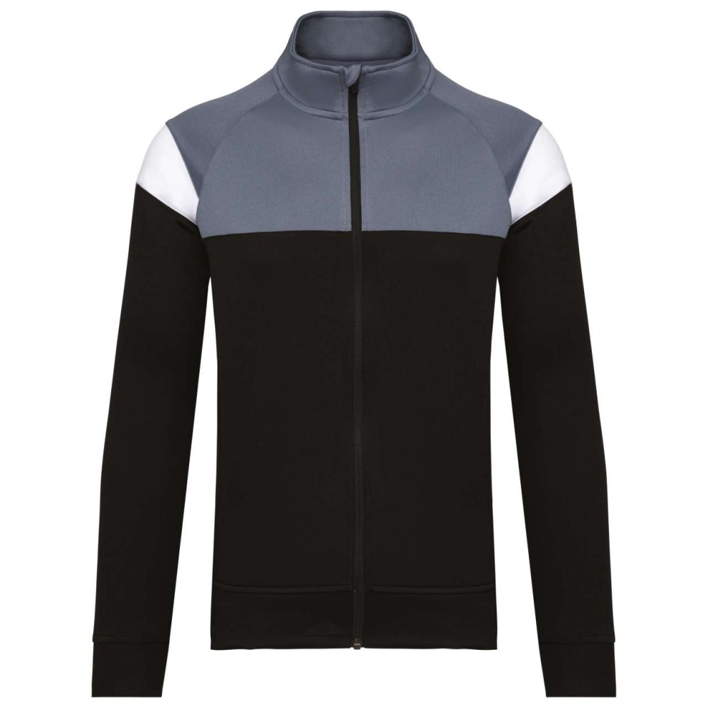Anyaga: 100% matt poliészter interlock. Egyenes szabás. Elöl fordított cipzáras záródás színazonos nejlonból. Raglán ujjak kontrasztos vállbetétekkel. Kontrasztos mell- és vállkialakítás. Két cipzáras elülső zseb. Texturált anyagbetétek az oldalakon és a hátrészen. Cipzárfedő a felső nyakkivágásnál a nagyobb kényelem érdekében. Könnyen eltávolítható márkajelzés a dekorációhoz. Emblémázás: Hímzés, Szitanyomás