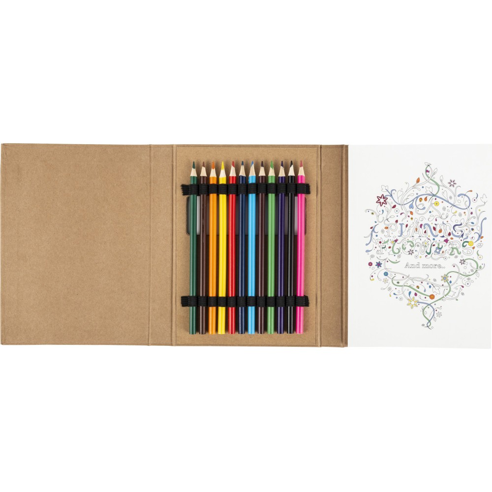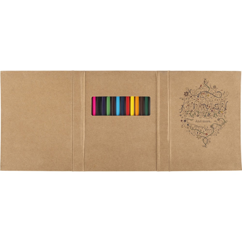 Színezőfüzet felnőttek számára 50 lappal és 12 színe sceruzával. 70 g/300 g papír. Emblémázás: Szitanyomás, Tamponnyomás