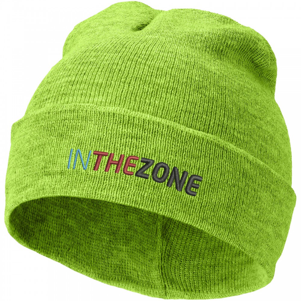 Egyrétegű sapka duplán felhajtott széllel. 1x1-es bordás kötésű, 100% akril. Emblémázás: Hímzés