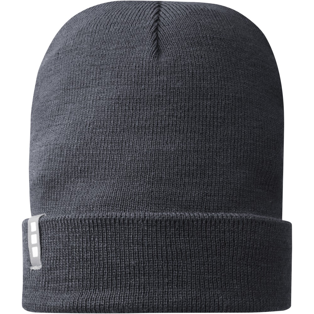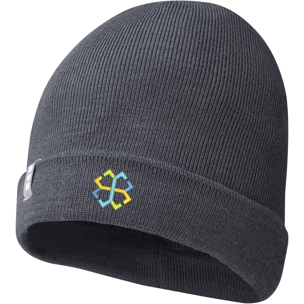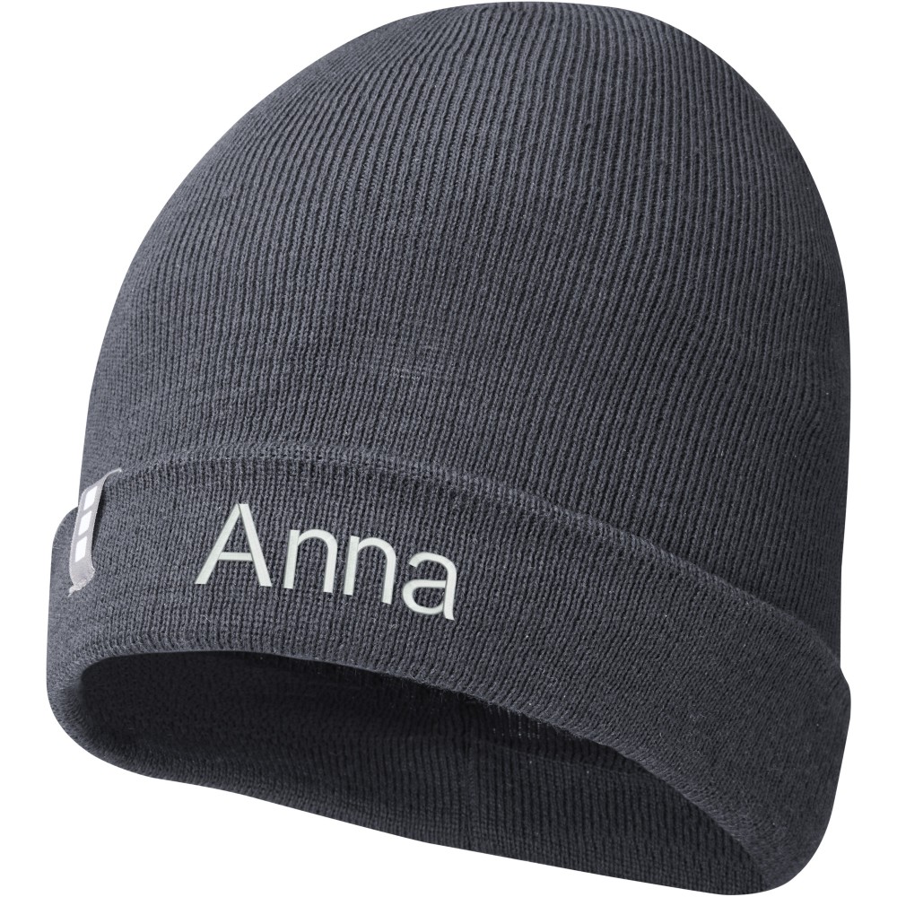 Egyrétegű sapka visszahajtókával, bevarrt márkajelzéssel. A Polylana szál öko alternatívát képez a 100% akril és a gyapjú alapanyagokhoz képest, mert csökkentett víz- és energia-felhasználással készül így csökkentve a CO2-kibocsátást. Emblémázás: Hímzés