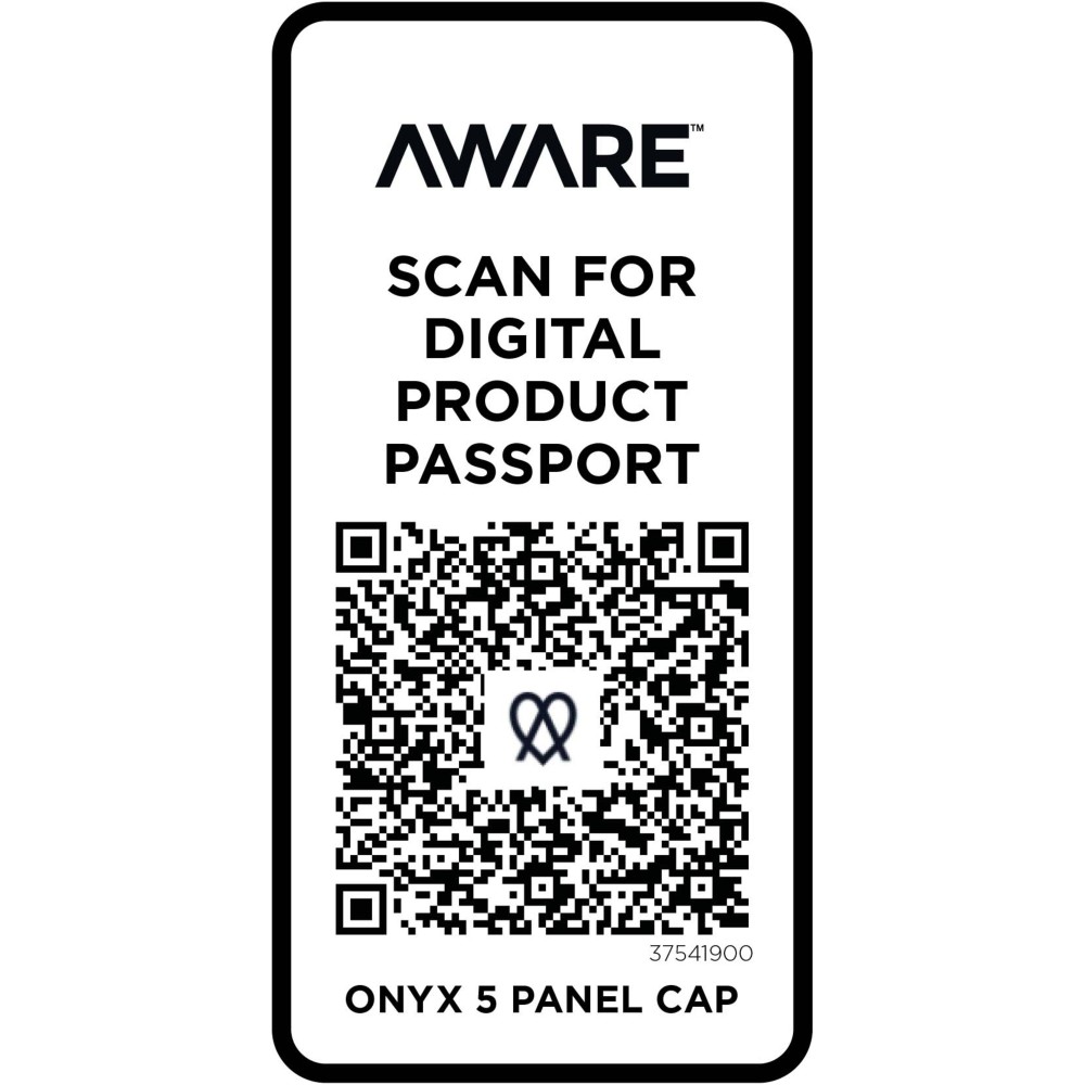 Az Onyx 5 paneles sapka 70%-ban újrahasznosított pamutból és 30%-ban újrahasznosított poliészterből készült. Úgy tervezték, hogy 58 cm-es fejkörfogatnál kényelmesen illeszkedjen, a fémcsatos záródás pedig könnyű és biztonságos beállítást tesz lehetővé. A sapka Cyclo újrahasznosított szálakat tartalmaz, ahol előválogatott hulladékot használnak, amely meghatározza a fonal színét. Ezek a szálak nem csak a szűz erőforrások iránti igényt csökkentik, hanem a körkörös élet iránti elkötelezettséget is mutatják, megtestesítve a hulladékcsökkentés lényegét. Minden sapkához egy Aware nyomjelző is tartozik. Ez az innovatív funkció lehetővé teszi a felhasználók számára, hogy egy QR-kód segítségével nyomon követhessék a termék eredetét és útját, növelve az ellátási lánc átláthatóságát, és elősegítve a termék és a gyártási folyamat közötti szorosabb kapcsolatot. Emblémázás: Hímzés, Szitanyomás