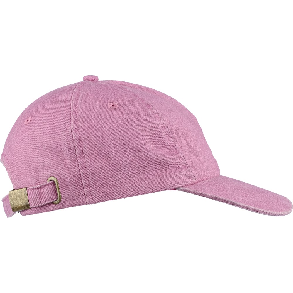 5 paneles baseballsapka 240 g/m2 vászon anyagból, koptatott hatású kivitelben, 7 cm-es ellenzővel, fémcsattal állítható pánttal. Bélés nélkül. Emblémázás: Hímzés, Szitanyomás