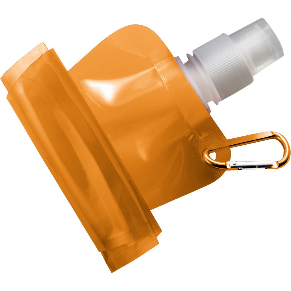 Összehajtható vizeskulacs karabinerrel. Nem szivárgásmentes. Mosogatógépben nem tisztítható. 420ml. BPA-mentes műanyag. Emblémázás: Tamponnyomás