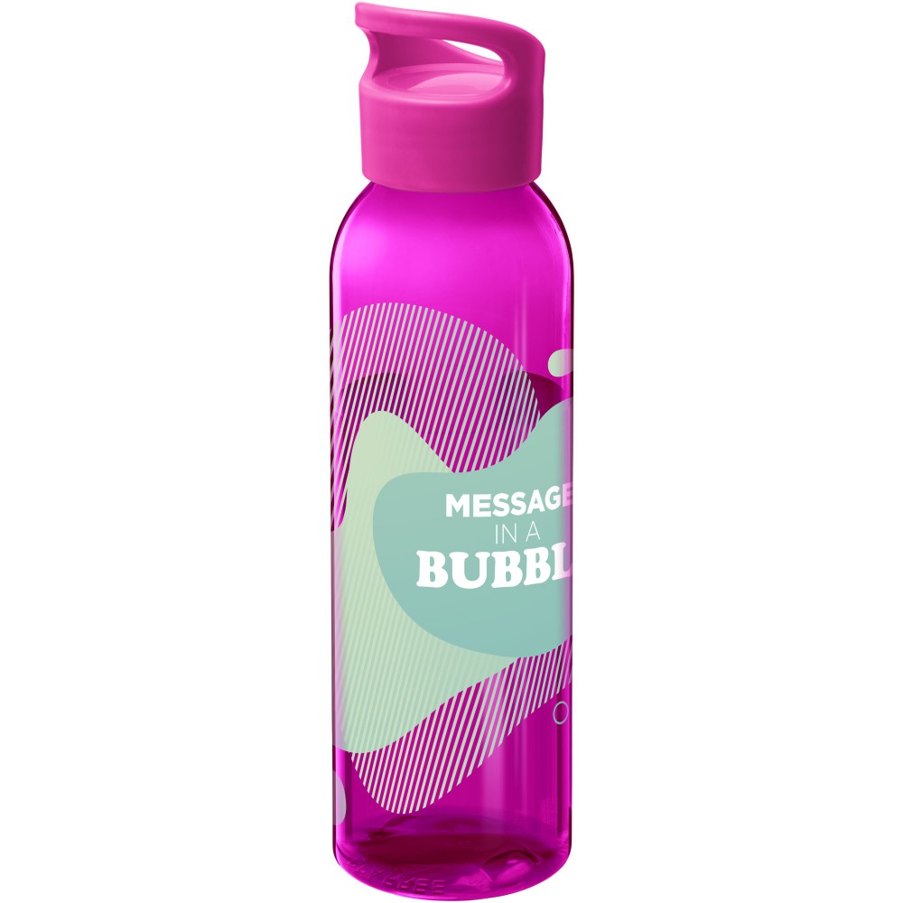 Az átlátszó Sky vizes palack Eastman Tritan anyagból készült, így ez a palack BPA-mentes, könnyű, tartós és ütésálló. Az egyfalú flakon 650 ml folyadékot tud tárolni, és a legtöbb hátizsák oldalzsebébe, valamint a legtöbb autós pohártartóba elfér. A felcsavarható fedél biztosítja a könnyű nyitást és zárást, valamint beépített hordozó fogantyúval rendelkezik. Szivárgásmentes. Szénsavas italokkal nem használható. Mosogatógépben nem mosható és mikrohullámú sütőben történő melegítésre nem alkalmas. Emblémázás: Körszita, Tamponnyomás, UV nyomtatás