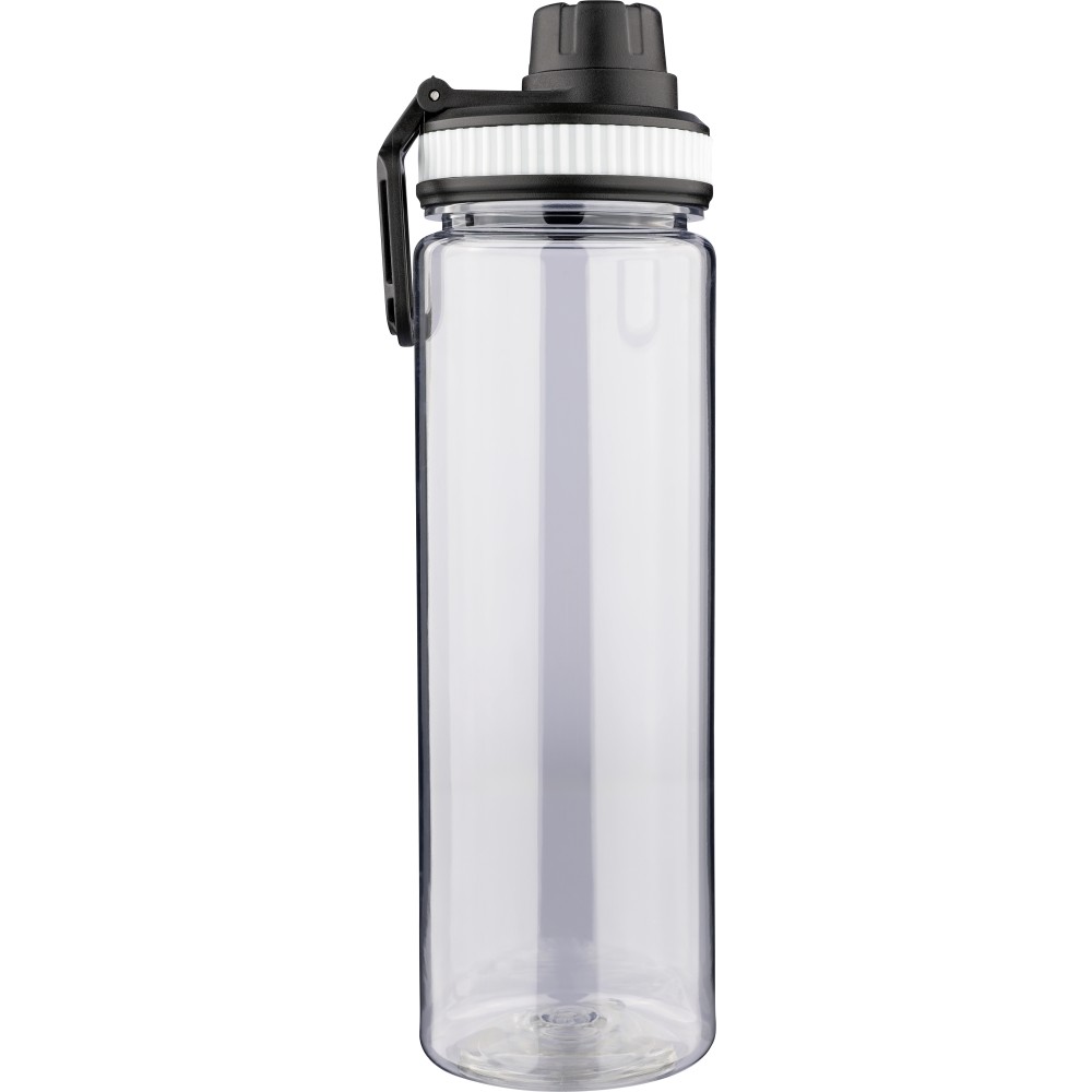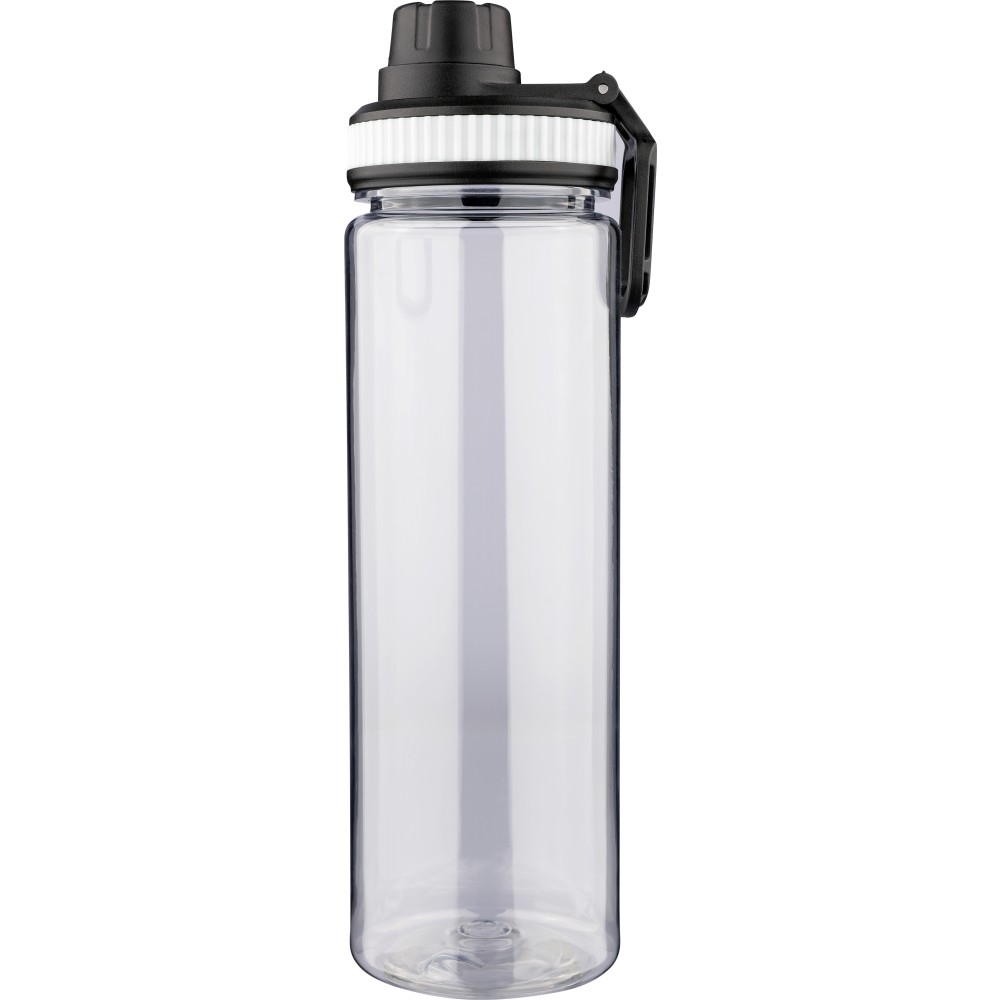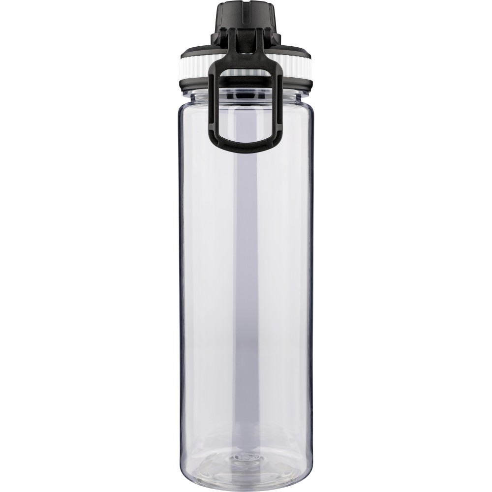 RPET anyagból készült ivópalack PP kupakkal, amely hordozófüllel és csavaros záródással rendelkezik, valamint a palack áttetsző testének színével harmonizáló szilikon díszítéssel. Űrtartalma 750 ml. Emblémázás: Körszita