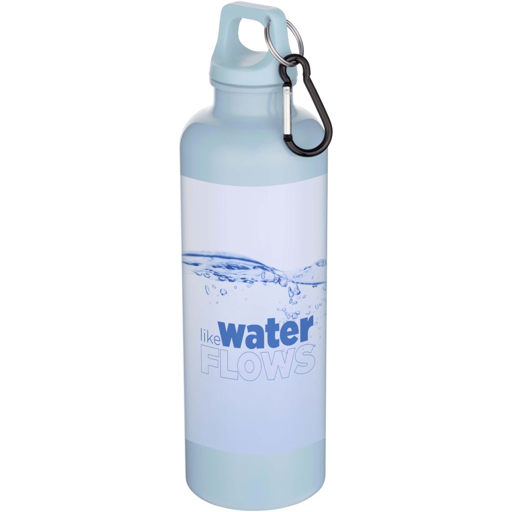 Az RCS tanúsítvánnyal rendelkező RPET-ből készült, tartós, mégis könnyű, 750 ml-es kulacs lehetővé teszi a folyamatos hidratálást. Tökéletes kísérő sportoláshoz, kirándulásokhoz vagy irodai használatra. A szimplafalú Oregon palack csavaros kupakkal rendelkezik, és bőséges felületet kínál bármilyen logó elhelyezésére. A mellékelt karabiner segítségével (mely mászásra nem alkalmas) a kulacs biztonságosan táskához rögzíthető. A termék megfelel az EFSA által jóváhagyott PET újrahasznosítási szabályoknak. Emblémázás: