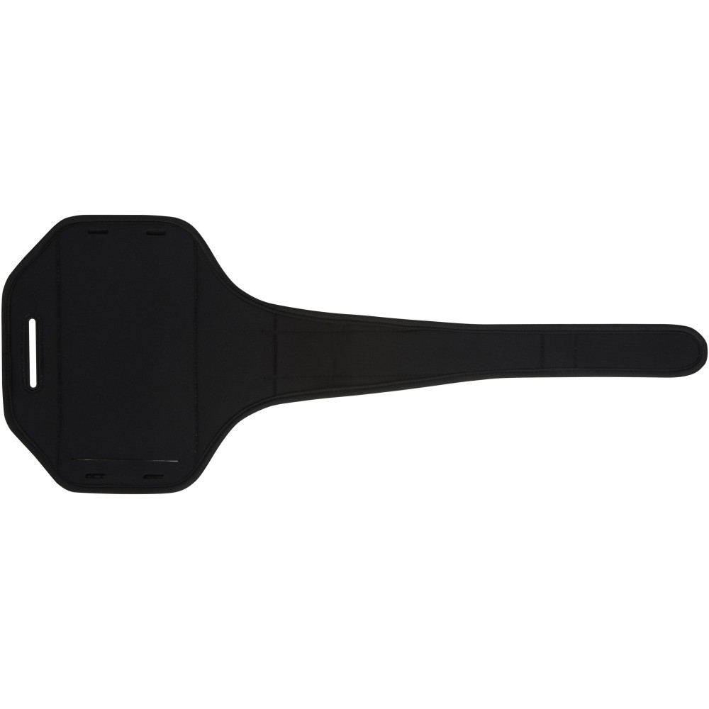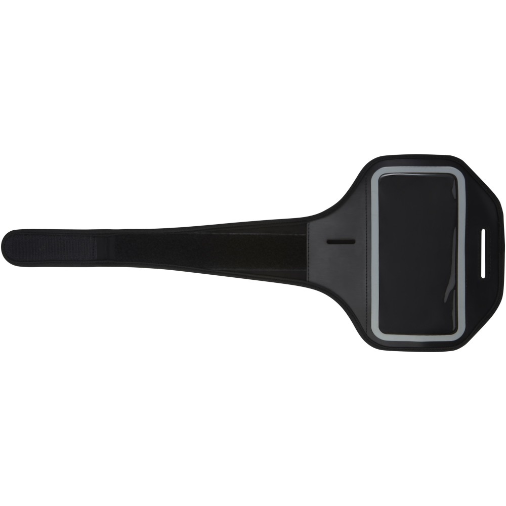 Állítható karpánt tépőzárral és átlátszó borítással a telefon védelme és kezelhetősége érdekében. Számos nagyobb méretű okostelefonhoz használható, mint például az iPhone X, 8, 7, 6, 5 és/vagy Galaxy Note S9, S8, S7, S6. A telefontartó mérete 8 x 18 cm. Az átlátszó ablakon fényvisszaverő csík található a jobb láthatóság érdekében. A tépőzáras karpánt különböző méretekre állítható. Tartalmaz egy extra zsebet a kulcsok vagy aprópénz tárolására. Emblémázás: Szitanyomás, Tamponnyomás