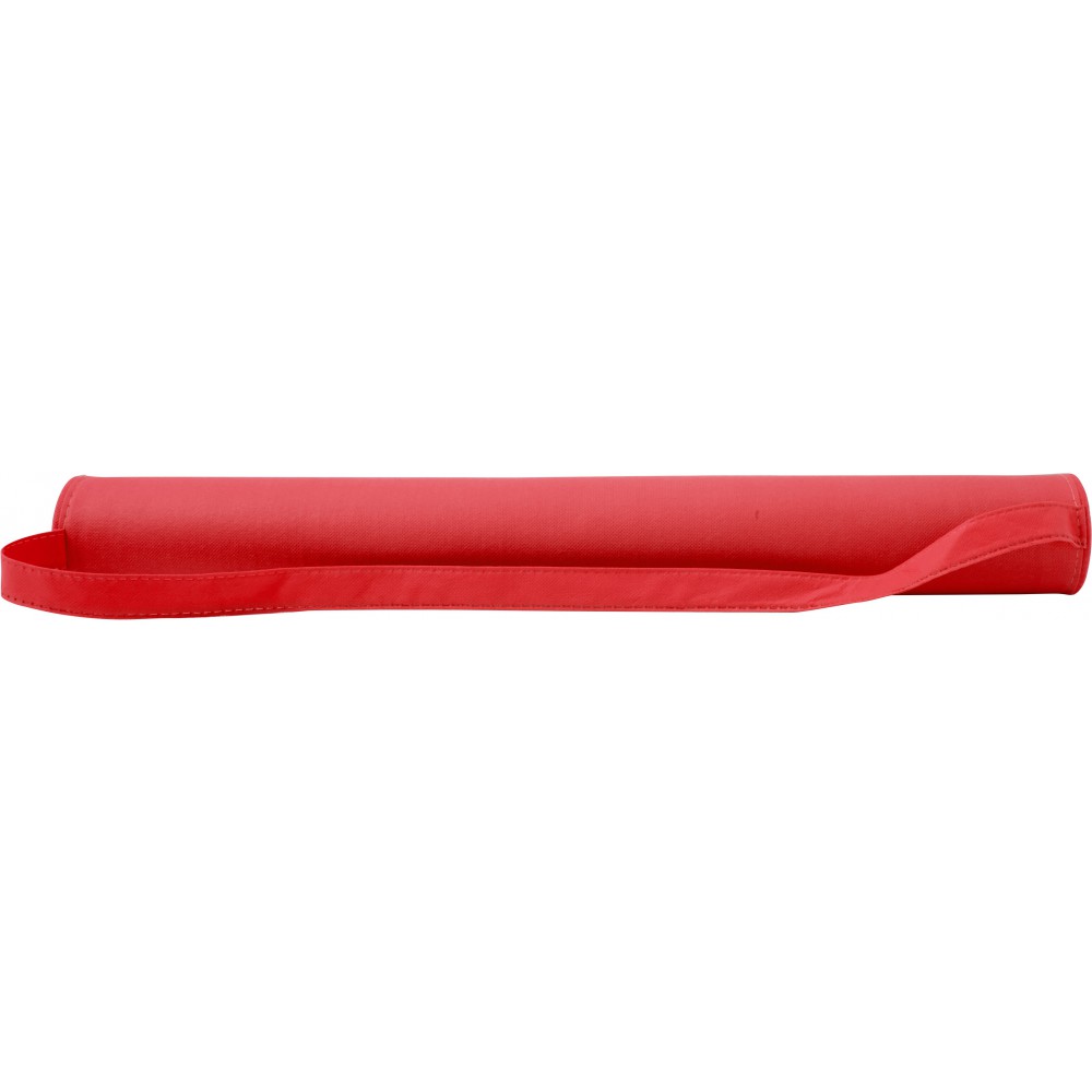 Összehajtható napozó színben illeszkedő hordozópánttal. Cipzárral összezárt mérete: 2,5 x 71 cm. PP nemszőtt anyag. Emblémázás: Szitanyomás
