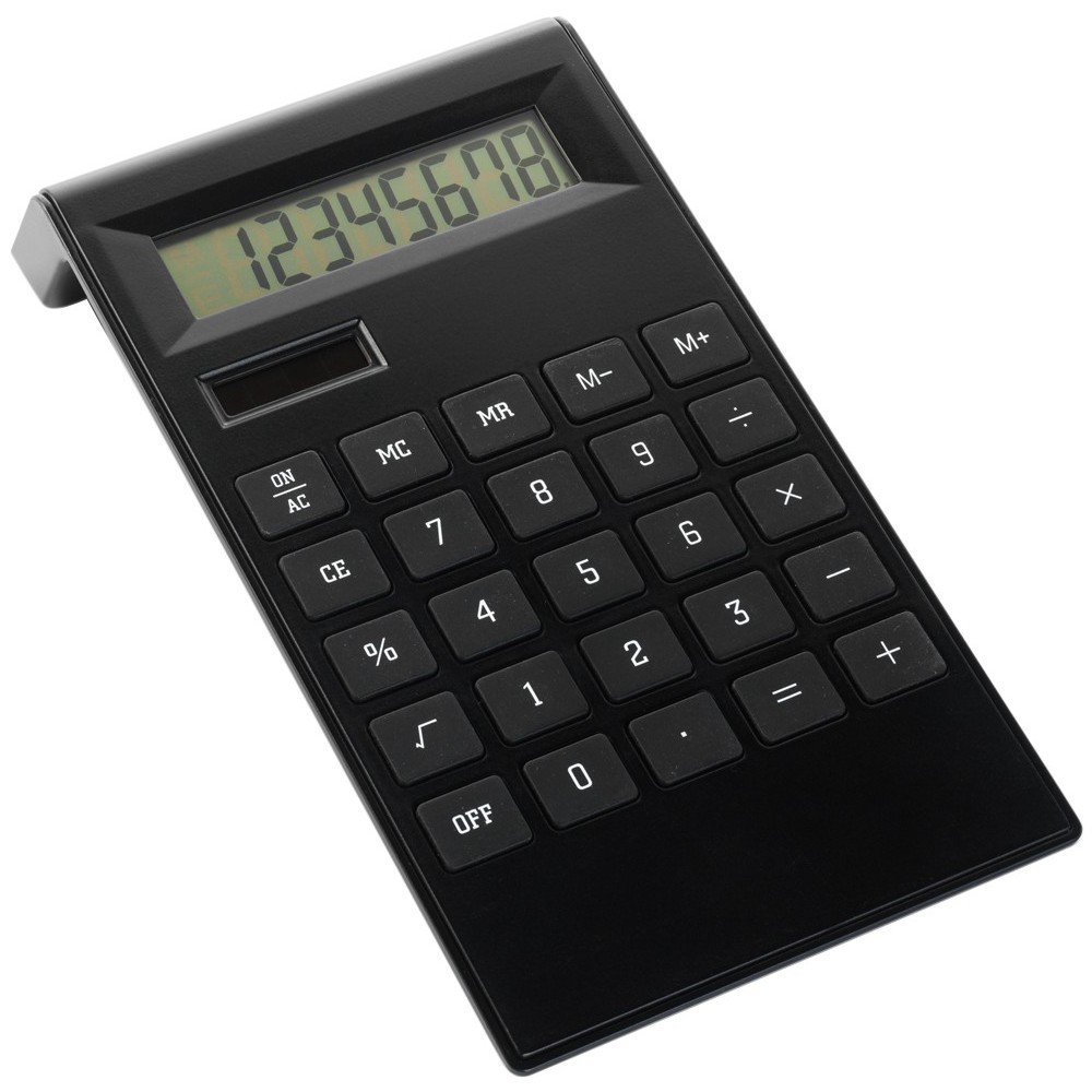 Számológép 8 karakteres kijelzővel, ABS műanyagból. Az elemet tartalmazza. Emblémázás: Tamponnyomás
