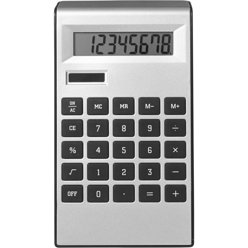 Számológép 8 karakteres kijelzővel, ABS műanyagból. Az elemet tartalmazza. Emblémázás: Tamponnyomás