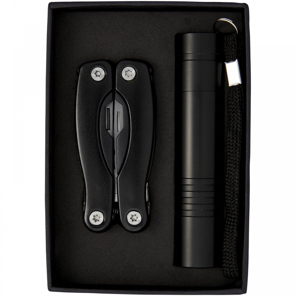 Scout többfunkciós szerszám és lámpa készlet, fekete