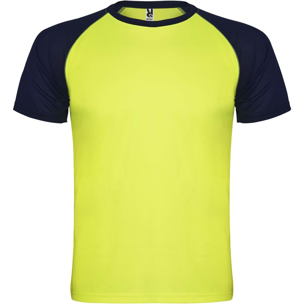Roly Indianapolis rövid ujjú gyerek sportpóló, fluor yellow, navy blue
