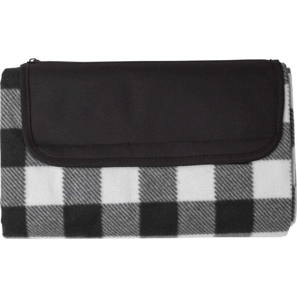 Polártakaró hátoldalán vízhatlan PEVA bevonattal, cipzáros zsebbel és fogóval. RPET polár anyag: 150 g/m2. Emblémázás: Szitanyomás