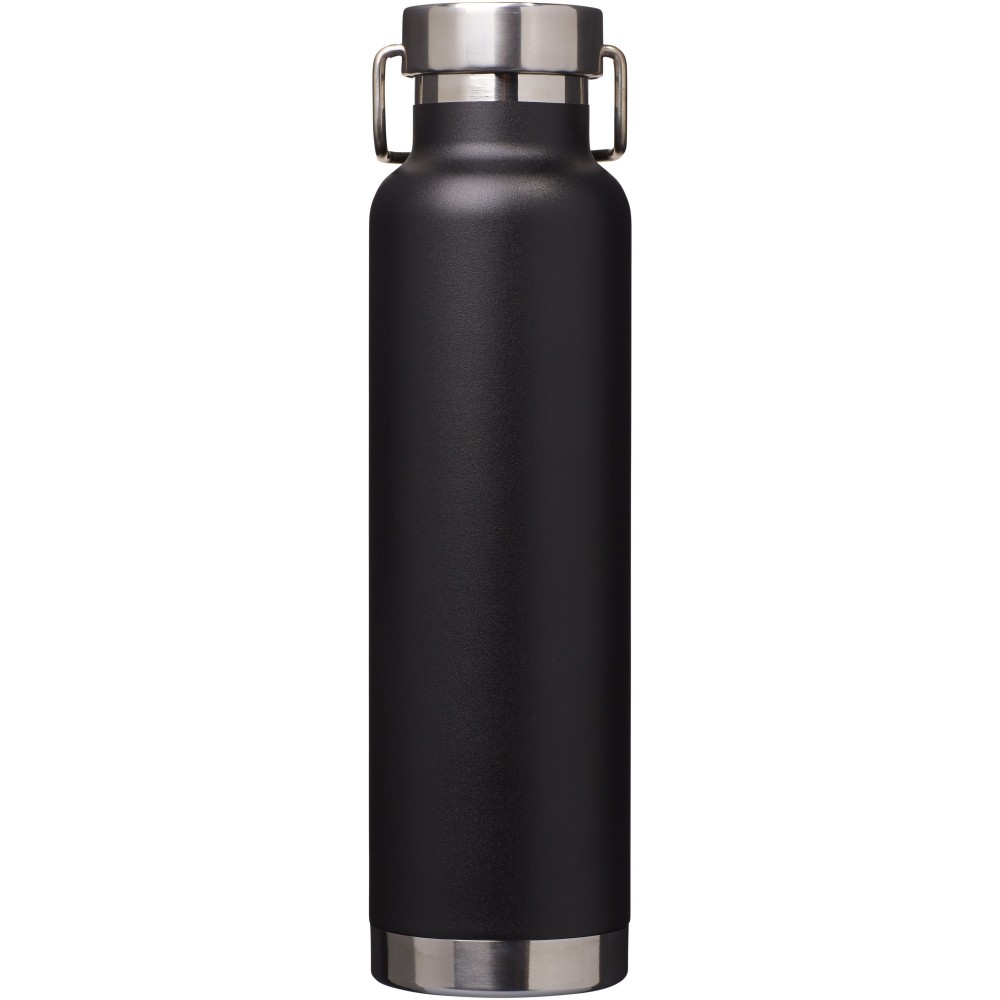 Thor duplafalú vákumos palack. Belső fala réz, ennek köszönhetően 48 órás hideg- és 12 órás melegtartási képességgel rendelkezik. Ez a kialakítás megakadályozza a kondenzációt a palack külső falán. A termoszhoz csavaros, rozsdamentes acél kupak tartozik. Széles kiöntő nyílással rendelkezik, amely akár jégkockák behelyezésére is alkalmas. Szivárgásmentes. Szénsavas italokkal nem használható. Mosogatógépben nem mosható és mikrohullámú sütőben történő melegítésre nem alkalmas. Űrtartalom: 650 ml. Csomagolása Avenue díszdoboz. Rozsdamentes acél. Emblémázás: Gravírozás, Tamponnyomás