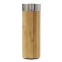 Duplafalú, vákuumos termosz fém teaszűrővel. Űrtartalom: 420 ml. Bambusz és rozsdamentes acél. Csomagolása fehér papírdoboz. Emblémázás: Gravírozás, Tamponnyomás