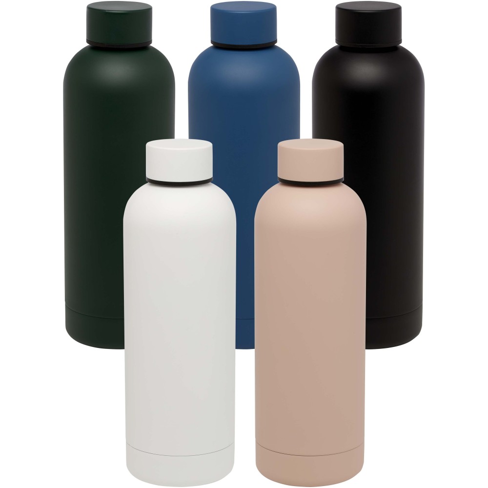 Rézvákuum szigetelésű, RCS tanúsítvánnyal rendelkező rozsdamentes acél palack letisztult dizájnnal. Az szigetelt rozsdamentes acél szerkezet megakadályozza a kondenzációt a palack belsejében, és a trendi matt porfestett felület extra tartóssá teszi. BPA-mentes, német élelmiszerbiztonsági jogszabály (LFGB) szerint tesztelt és jóváhagyott. Ftalát-tartalom szerint REACH szabályozásoknak megfelelően tesztelt és jóváhagyott. Űrtartalom: 500 ml. Kézi mosogatás javasolt. Újrahasznosított kartondobozban szállítjuk. Emblémázás: Bögredekor, Gravírozás