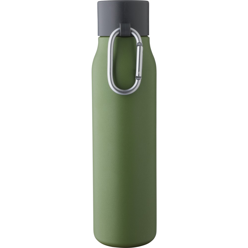 Újrahasznosított rozsdamentes acélból készült palack (600 ml-es). A belső anyaga 304-es, a külső anyaga pedig 201-es rozsdamentes acél. Szivárgásmentes PP kupakkal és alumínium karabinerrel. A karabiner mászáshoz nem alkalmas. A palack a benne tárolt italt 6 órán át melegen vagy 9 órán át hidegen tartja. Az újrahasznosított anyagra utaló logó a palackra van gravírozva. Csomagolása barna papírdoboz. Emblémázás: Gravírozás, Körszita, Tamponnyomás