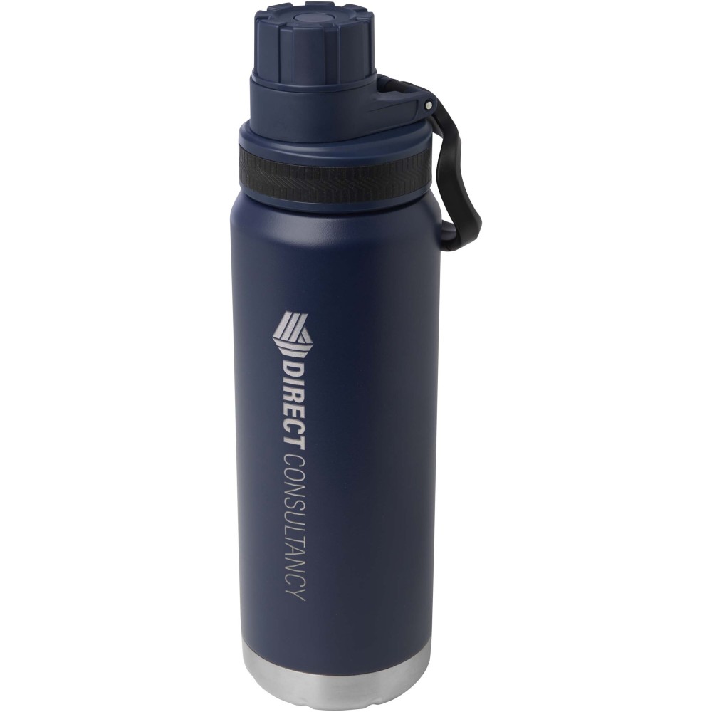 RCS tanúsítvánnyal rendelkező, rozsdamentes acélból készült, dupla falú, rézvákuum-szigetelésű kulacs csavaros, szivárgásmentes fedéllel. Széles nyílása megkönnyíti a töltést és a tisztítást, a fedélbe integrált hordozófül pedig praktikus szállítást biztosít. Szénsavas italokhoz is alkalmas. Külső felületén tartós porszórt bevonat található. Újrahasznosított karton díszdobozban kerül átadásra. Űrtartalom: 700 ml. Emblémázás: Bögredekor, Körszita