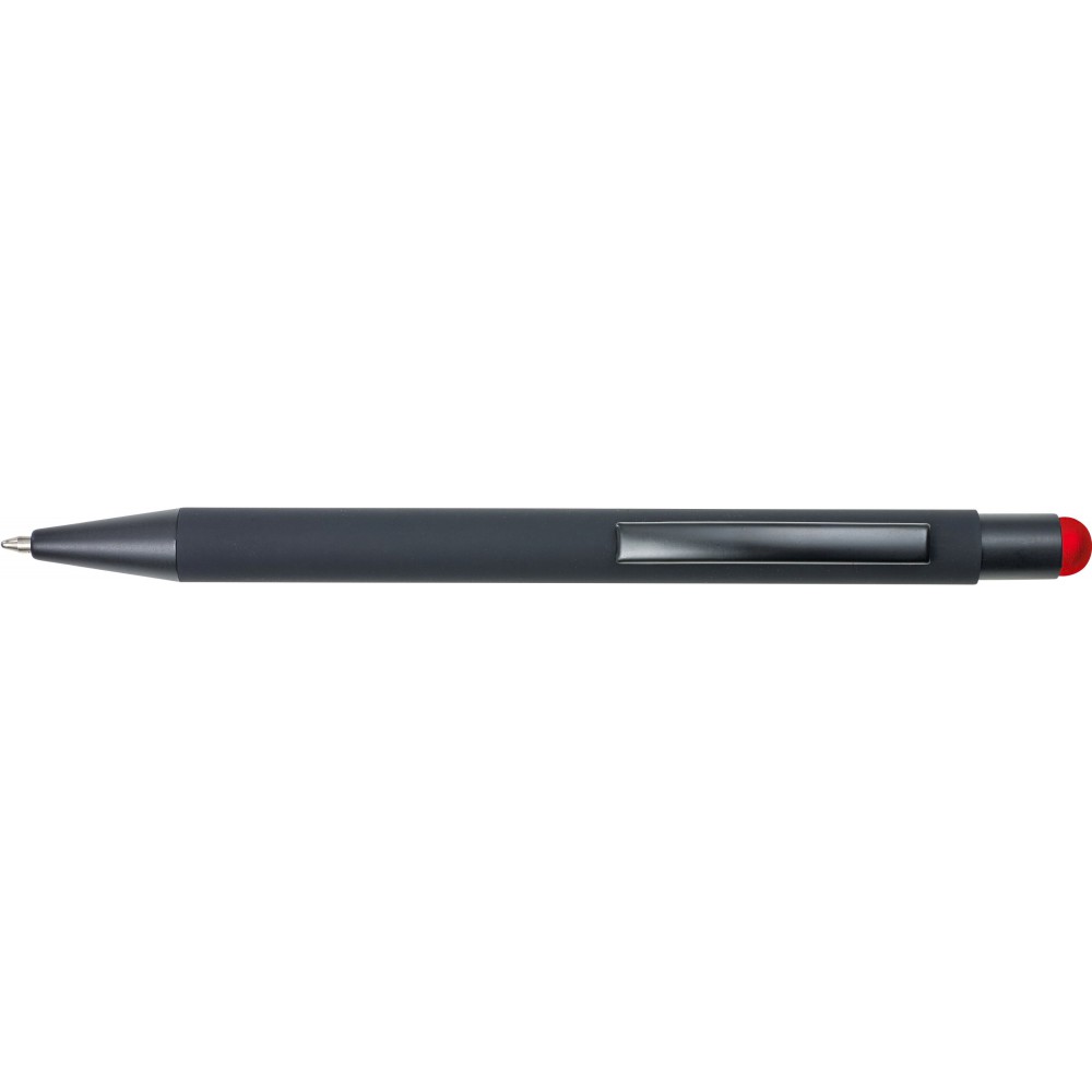 Golyóstoll színes érintővel, kék tollbetéttel és színes belső felülettel. ABS műanyag és alumínium. Emblémázás: UV nyomtatás