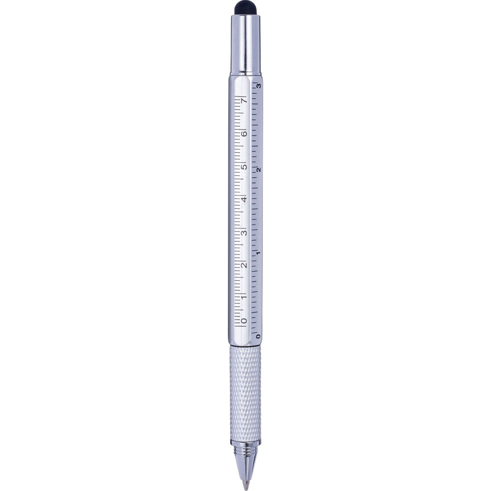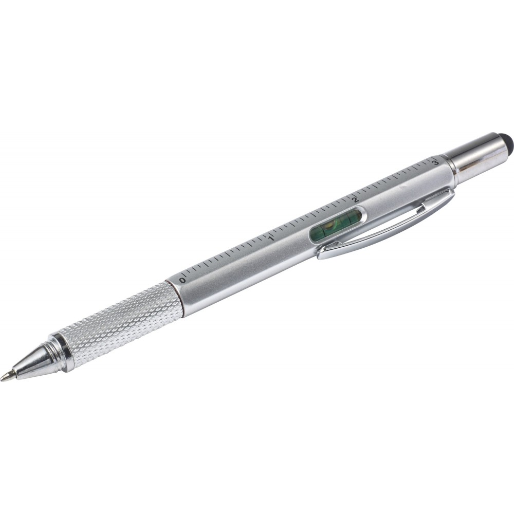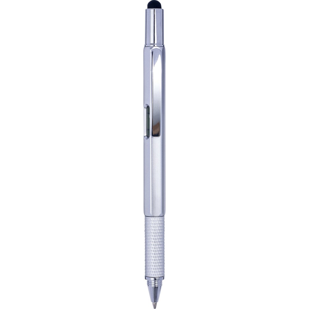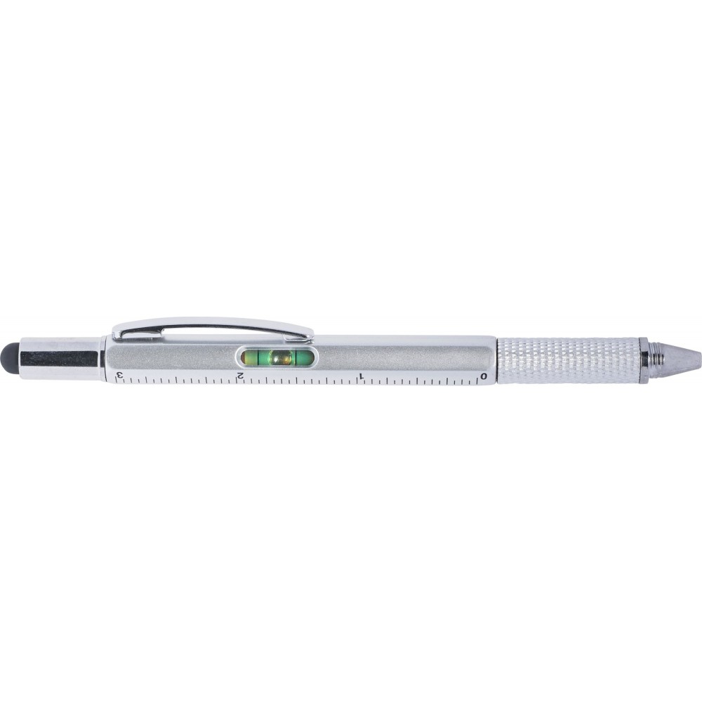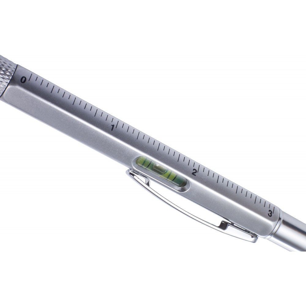 Többfunkciós golyóstoll vízmértékkel, ezüst