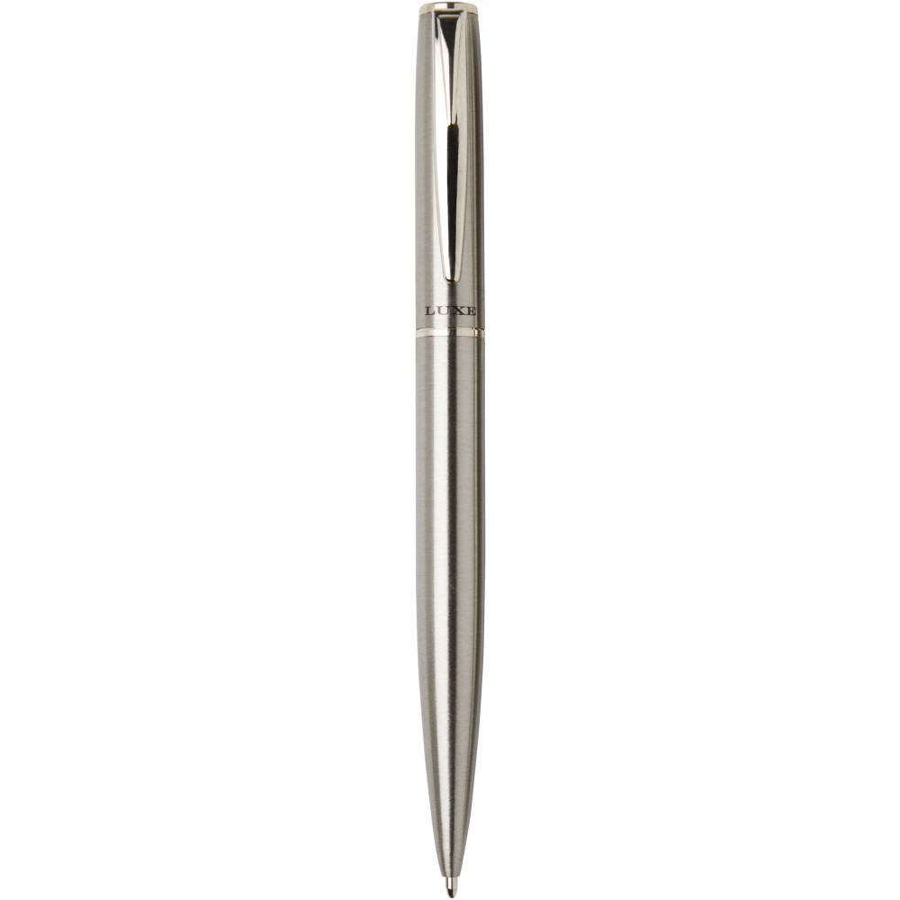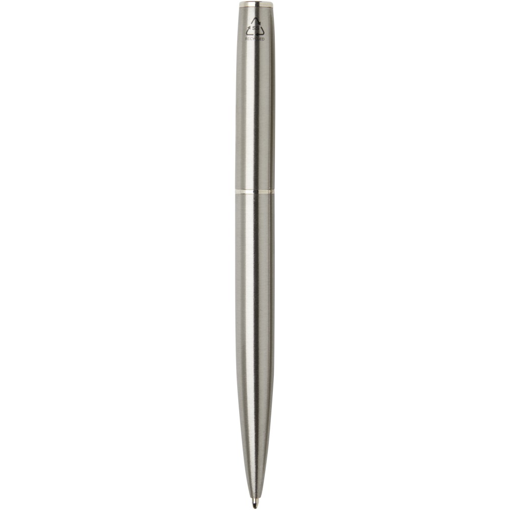 A Didimis golyóstoll és rollerball készlet újrahasznosított rozsdamentes acélból készült. Az újrahasznosított rozsdamentes acélból készült tollak választása hozzájárul a hulladék mennyiségének csökkentéséhez, így fenntarthatóbb választás. A toll tintájának színe: fekete. Tollhegy mérete: 1,00 mm. Íráshossz: 800 méter. Doboz mérete: 16,2 x 5,1 x 2,7 cm. Emblémázás: Gravírozás, Tamponnyomás