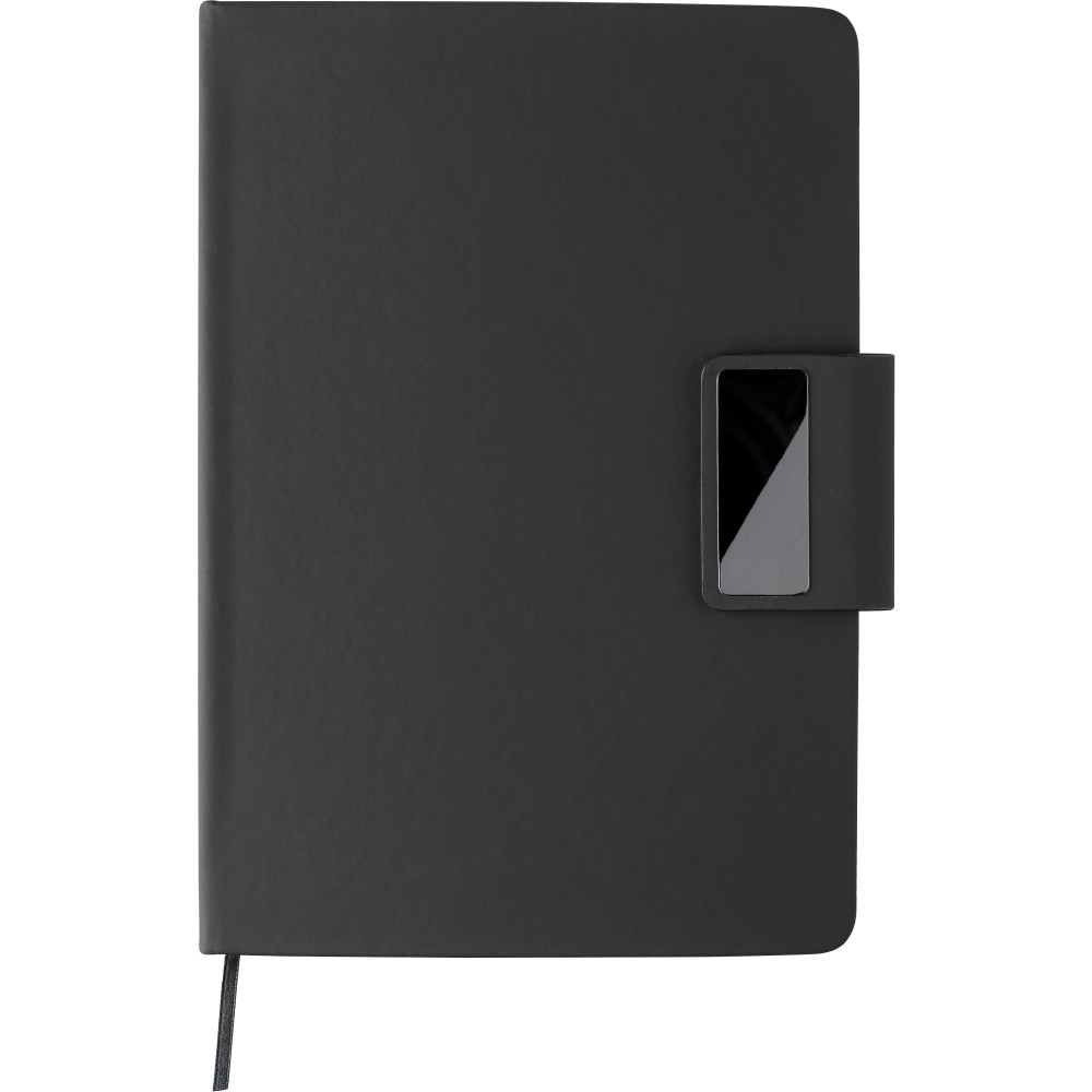 Karton ajándékkészlet. Tartalma: újrahasznosított alumínium csavaros golyóstoll kék tintával és újrahasznosított PU jegyzetfüzet. A jegyzetfüzet 80 lapos 70 g/m2-es vonalas papírral, és szalagos könyvjelzőt és fém mágneses zárat tartalmaz acélszürke gravírozott lappal. Mindkét termék újrahasznosított logóval van ellátva: dombornyomva a jegyzetfüzeten és gravírozva a tollon. Emblémázás: Gravírozás, Szitanyomás