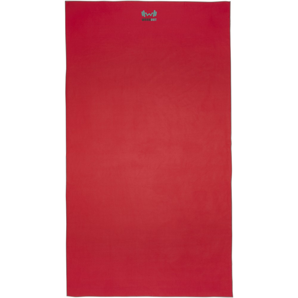 A Pieter sporttörülköző nagyon jó nedvszívó, könnyű, gyorsan szárad, az anyaga pedig tartós és rendkívül puha. Ha a törölközőt összehajtjuk és gumiszalaggal rögzítjük, kis méretűre csomagolható, így alkalmas arra, hogy magunkkal vigyük az edzőterembe, uszodába, vagy ha hátizsákos túrára, esetleg kempingezésre megyünk. A törülköző 100 x 180 cm méretű, 90% GRS újrahasznosított poliészterből és 10% nejlonból készült, és 40 °C-on mosható mosógépben. Újrahasznosított PET műanyagból készült tároló tasakkal (25 x 8,5 cm) szállítjuk. Emblémázás: Hímzés, Szitanyomás
