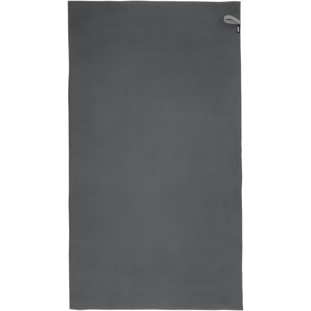 A Pieter sporttörülköző nagyon jó nedvszívó, könnyű, gyorsan szárad, az anyaga pedig tartós és rendkívül puha. Ha a törölközőt összehajtjuk és gumiszalaggal rögzítjük, kis méretűre csomagolható, így alkalmas arra, hogy magunkkal vigyük az edzőterembe, uszodába, vagy ha hátizsákos túrára, esetleg kempingezésre megyünk. A törülköző 100 x 180 cm méretű, 90% GRS újrahasznosított poliészterből és 10% nejlonból készült, és 40 °C-on mosható mosógépben. Újrahasznosított PET műanyagból készült tároló tasakkal (25 x 8,5 cm) szállítjuk. Emblémázás: Hímzés, Szitanyomás