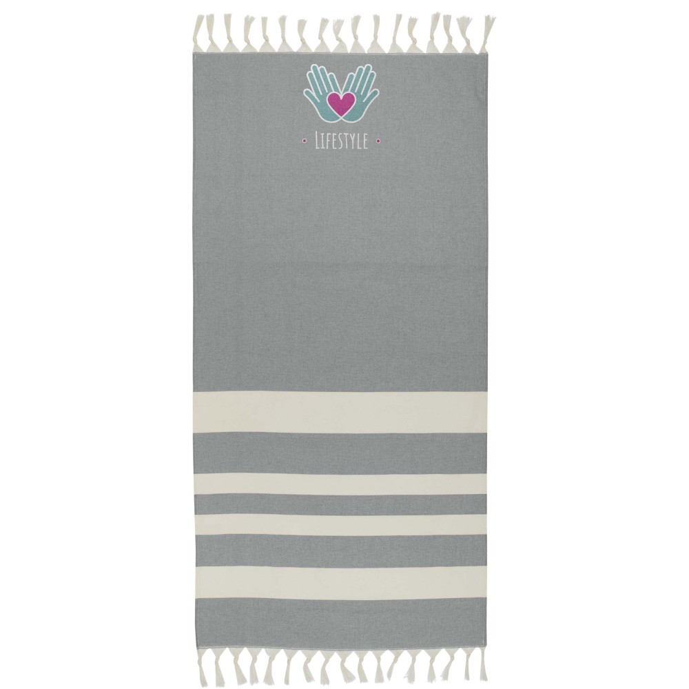 Az Anders hammam törölköző luxus kényelmet nyújt nagy méreteivel (147 x 75,5 cm), biztosítva a megfelelő takarást, akár a medence mellett pihensz, akár a tengerparton töltöd a napot. A törölköző mindkét végén elegáns bojtokkal van díszítve, anyaga 30% pamut, 35% GRS tanúsítvánnyal rendelkező újrahasznosított pamut és 35% GRS tanúsítvánnyal rendelkező újrahasznosított poliészter. 180 g/m2. Emblémázás: Hímzés, Szitanyomás