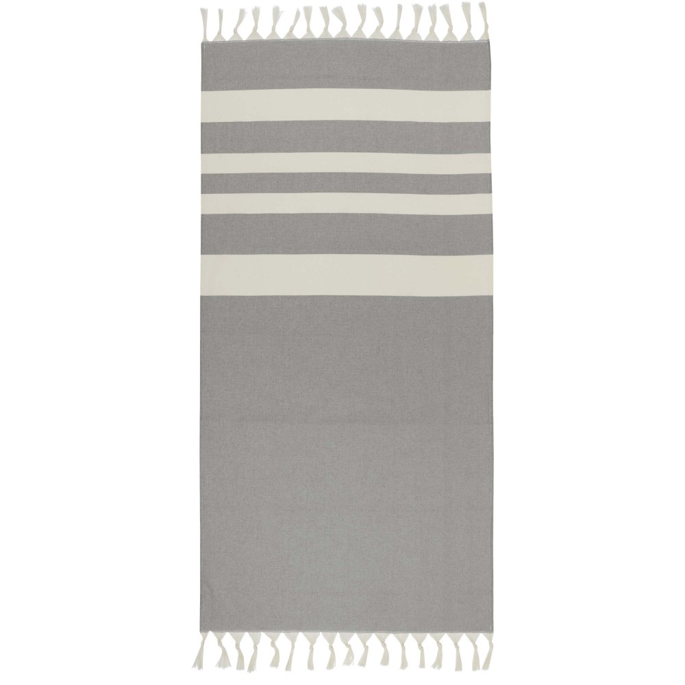 Az Anders hammam törölköző luxus kényelmet nyújt nagy méreteivel (147 x 75,5 cm), biztosítva a megfelelő takarást, akár a medence mellett pihensz, akár a tengerparton töltöd a napot. A törölköző mindkét végén elegáns bojtokkal van díszítve, anyaga 30% pamut, 35% GRS tanúsítvánnyal rendelkező újrahasznosított pamut és 35% GRS tanúsítvánnyal rendelkező újrahasznosított poliészter. 180 g/m2. Emblémázás: Hímzés, Szitanyomás