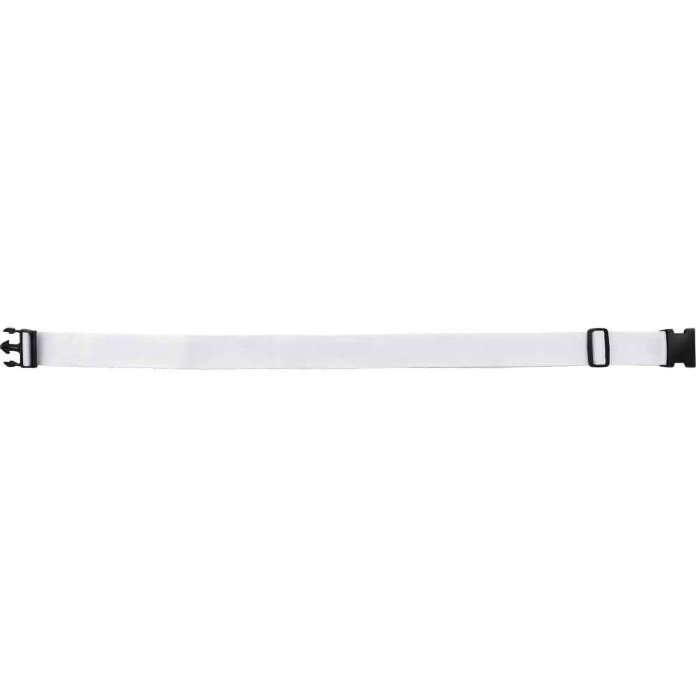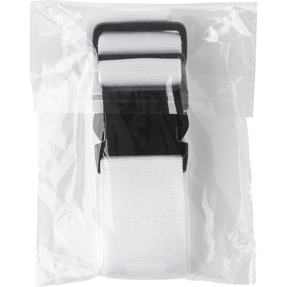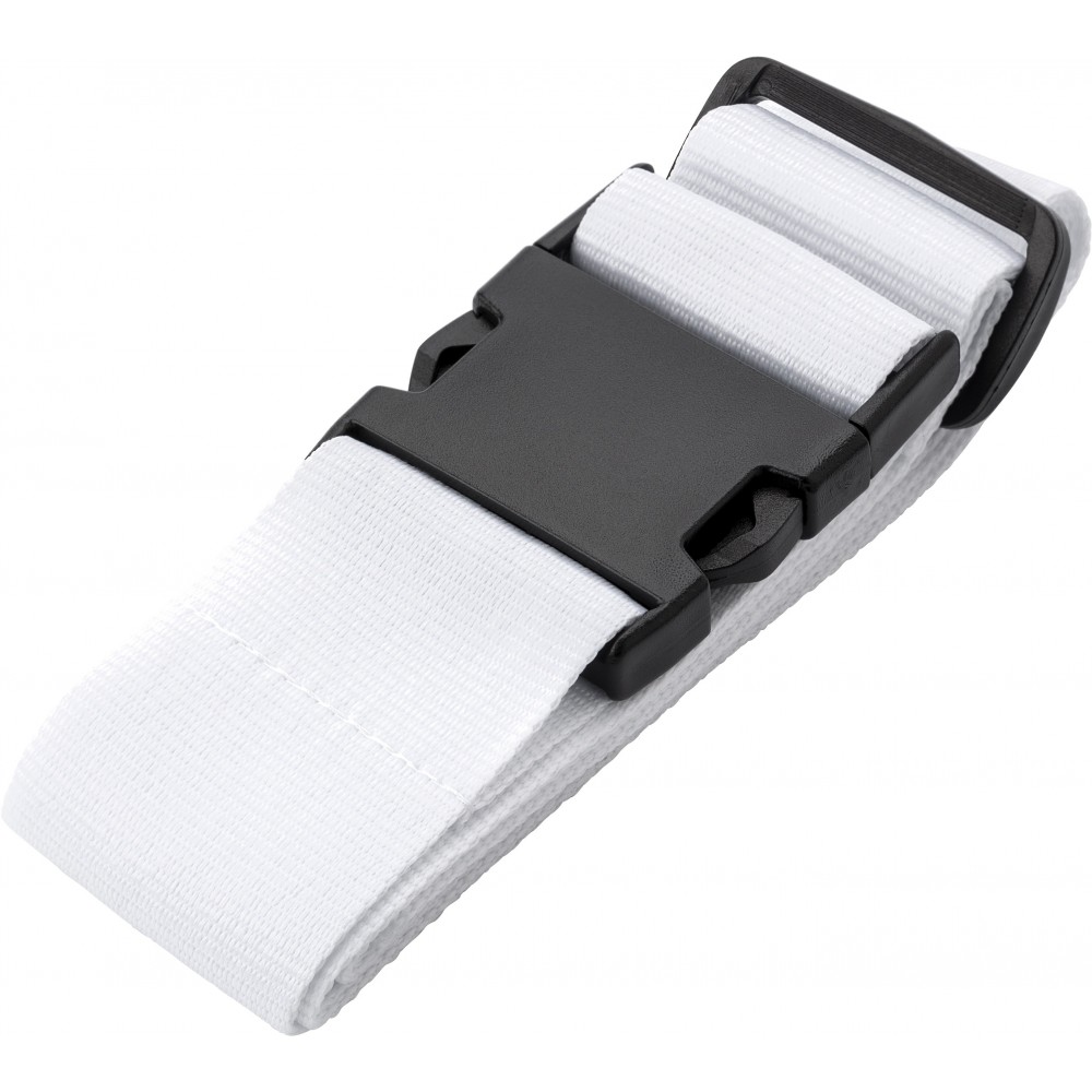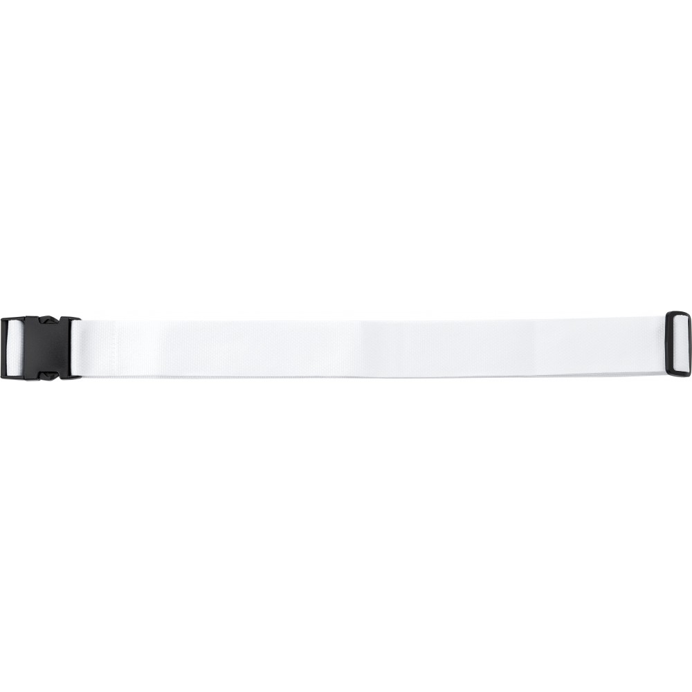 Bőröndösszefogó pánt műanyag csattal. Emblémázás: Szitanyomás, Tamponnyomás