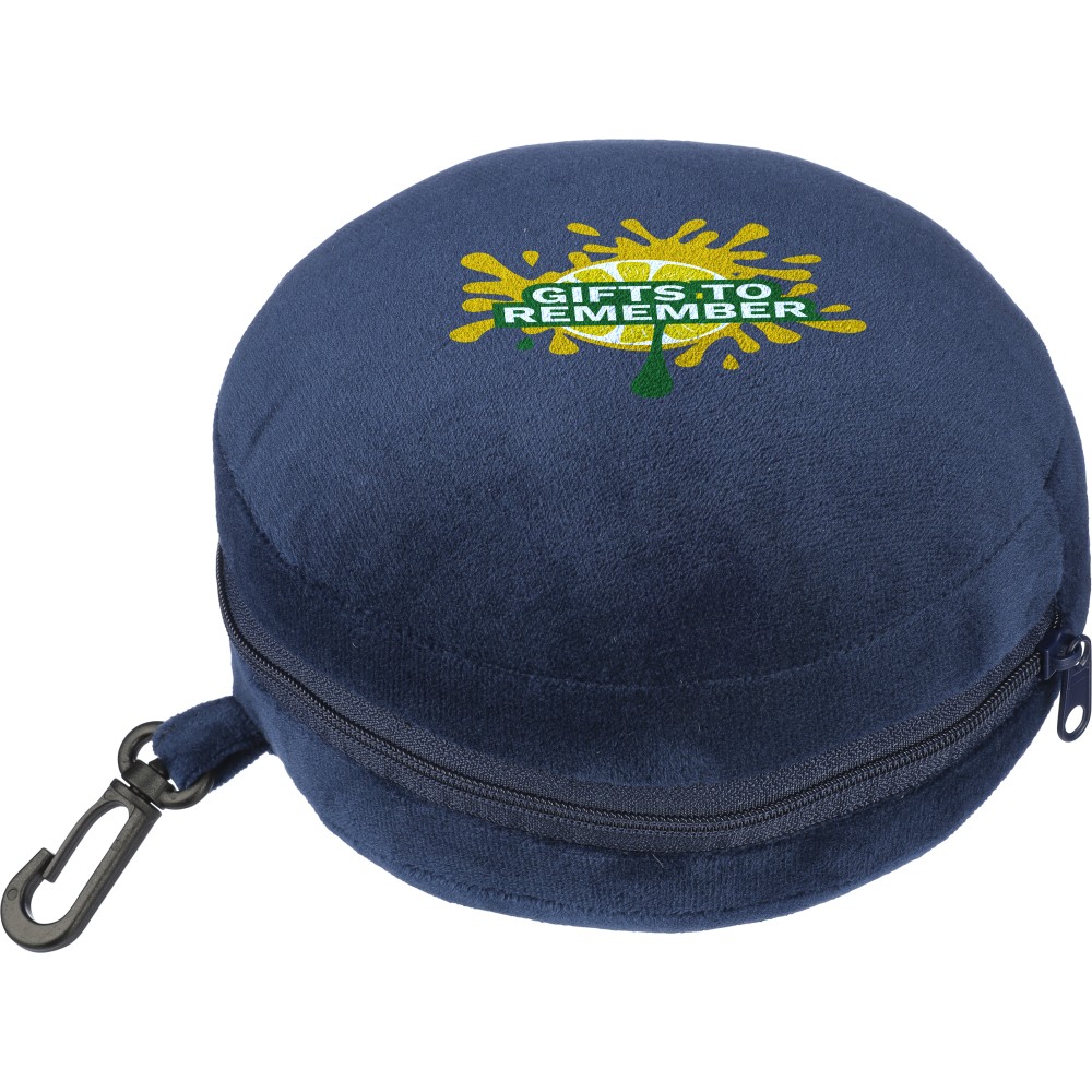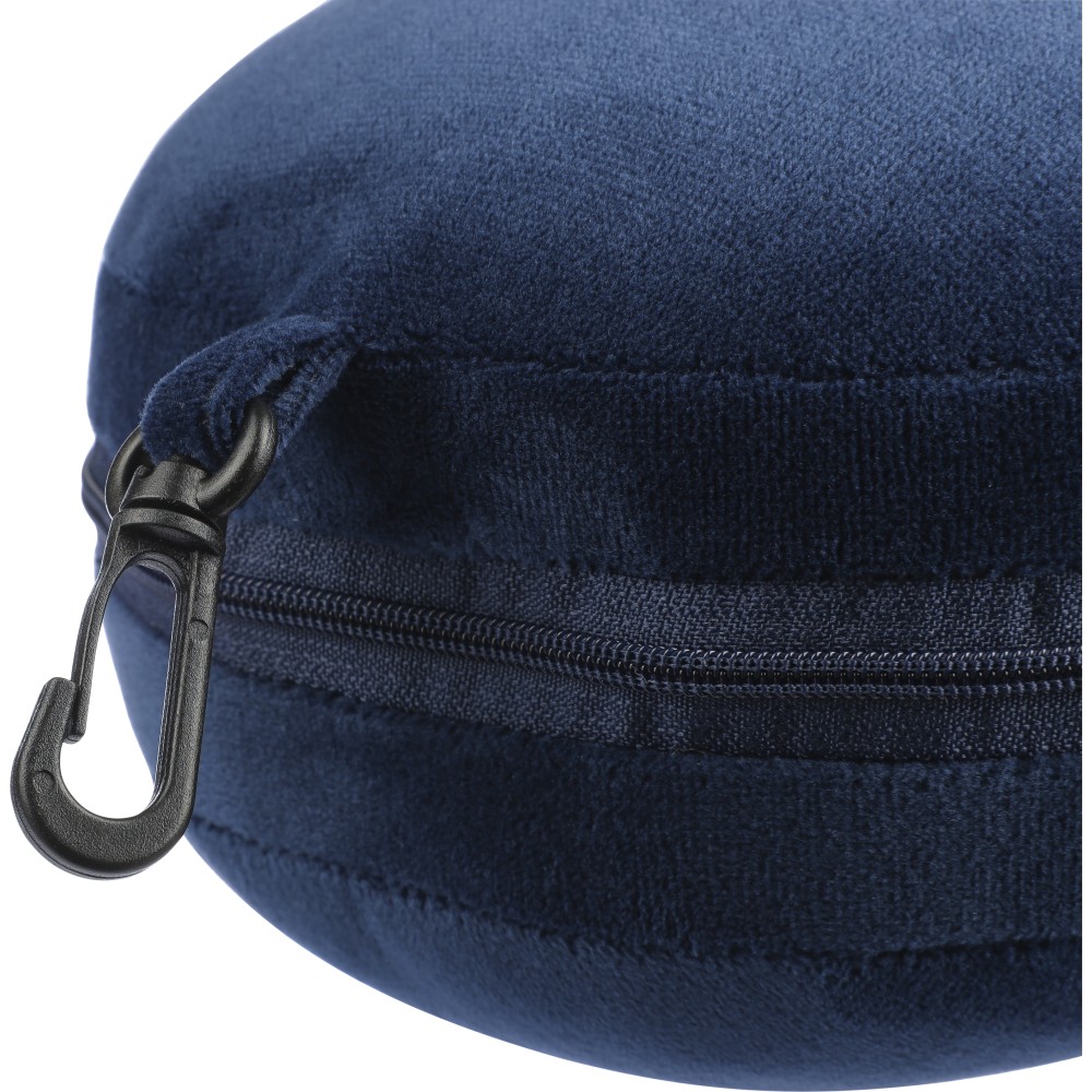 Poliészter utazópárna szett puha poliészter és PP pamut töltettel. Szemmaszkként, és párnaként is használható. PP karabinerrel. Emblémázás: Szitanyomás