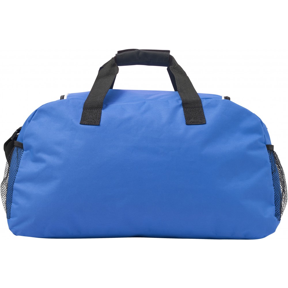 Sport- és utazótáska cipzáros elsőzsebbel és mindkét végén hálós zsebekkel. 600D poliészter. Emblémázás: Szitanyomás