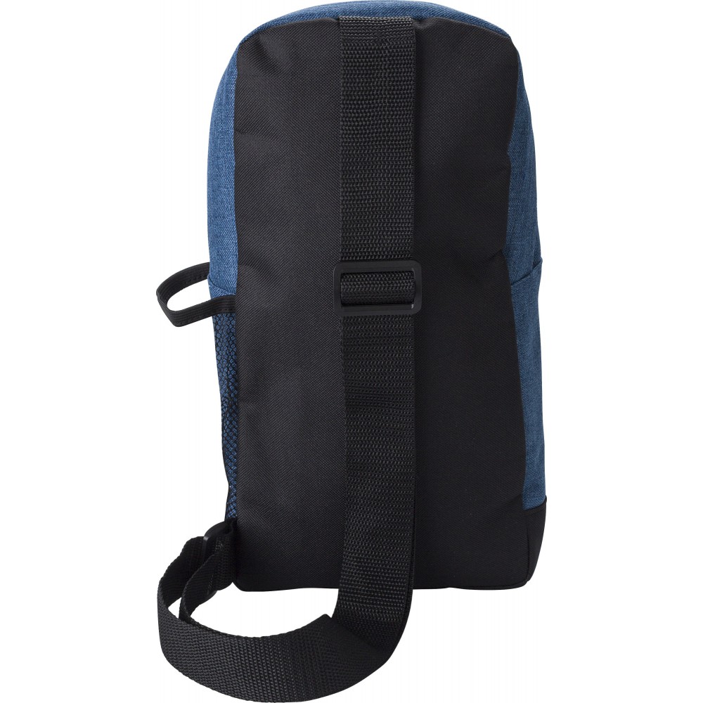 Nagy keresztpántos válltáska egy állítható pánttal. Egy nagy rekesz, egy cipzáras elülső zseb és egy hálós zseb az oldalán. 600D poliészter. Emblémázás: Szitanyomás