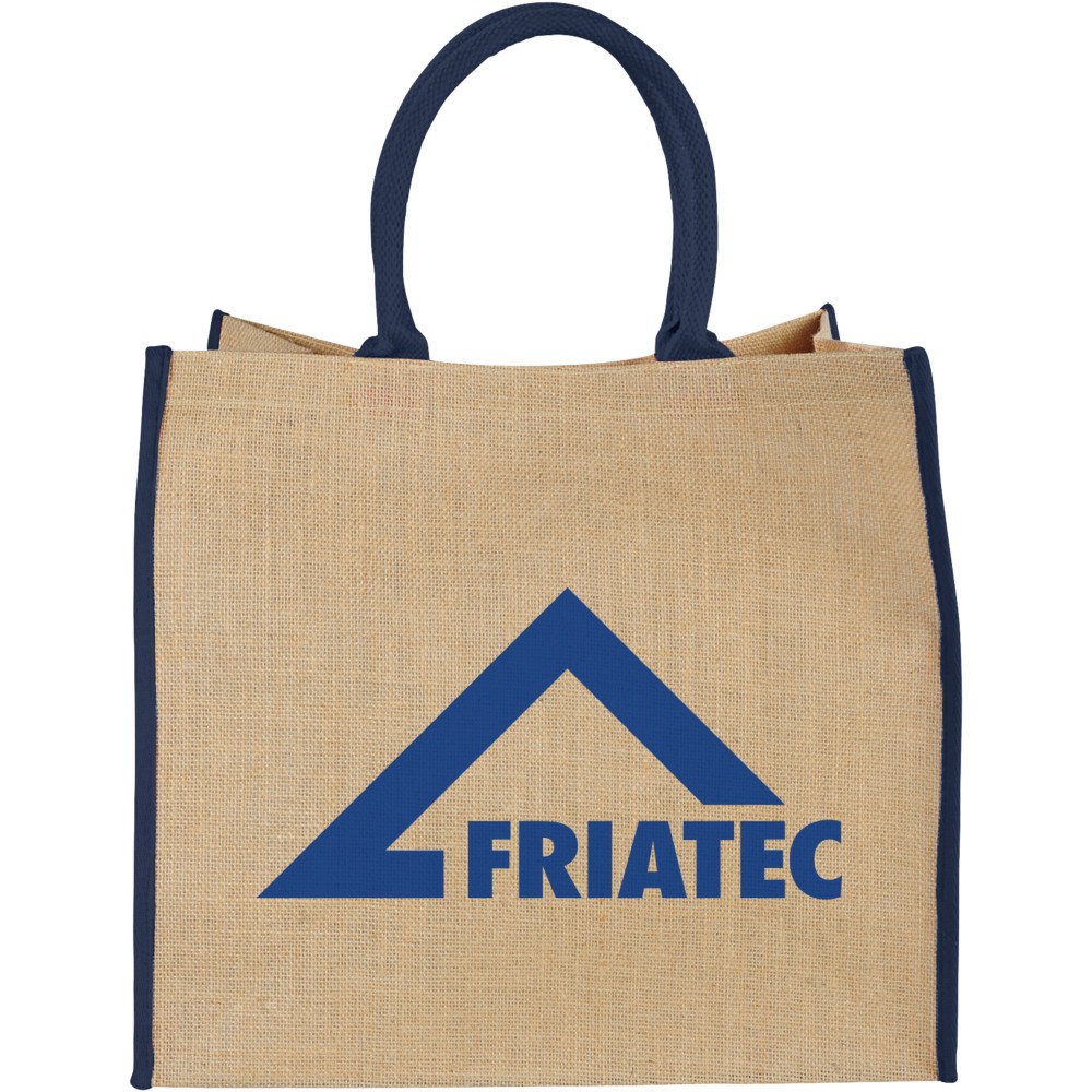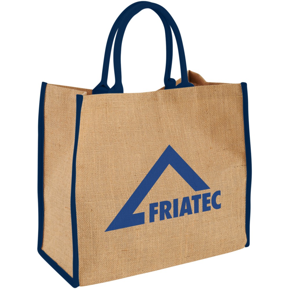 The Large juta bevásárlótáska tépőzáras kialakítással. A lehajtható fülek magassága 17 cm. Megjegyzés: finom grafikát vagy szöveget nem, csak vastag, erős nyomatott lehet az anyagon alkalmazni. Juta. Emblémázás: Szitanyomás