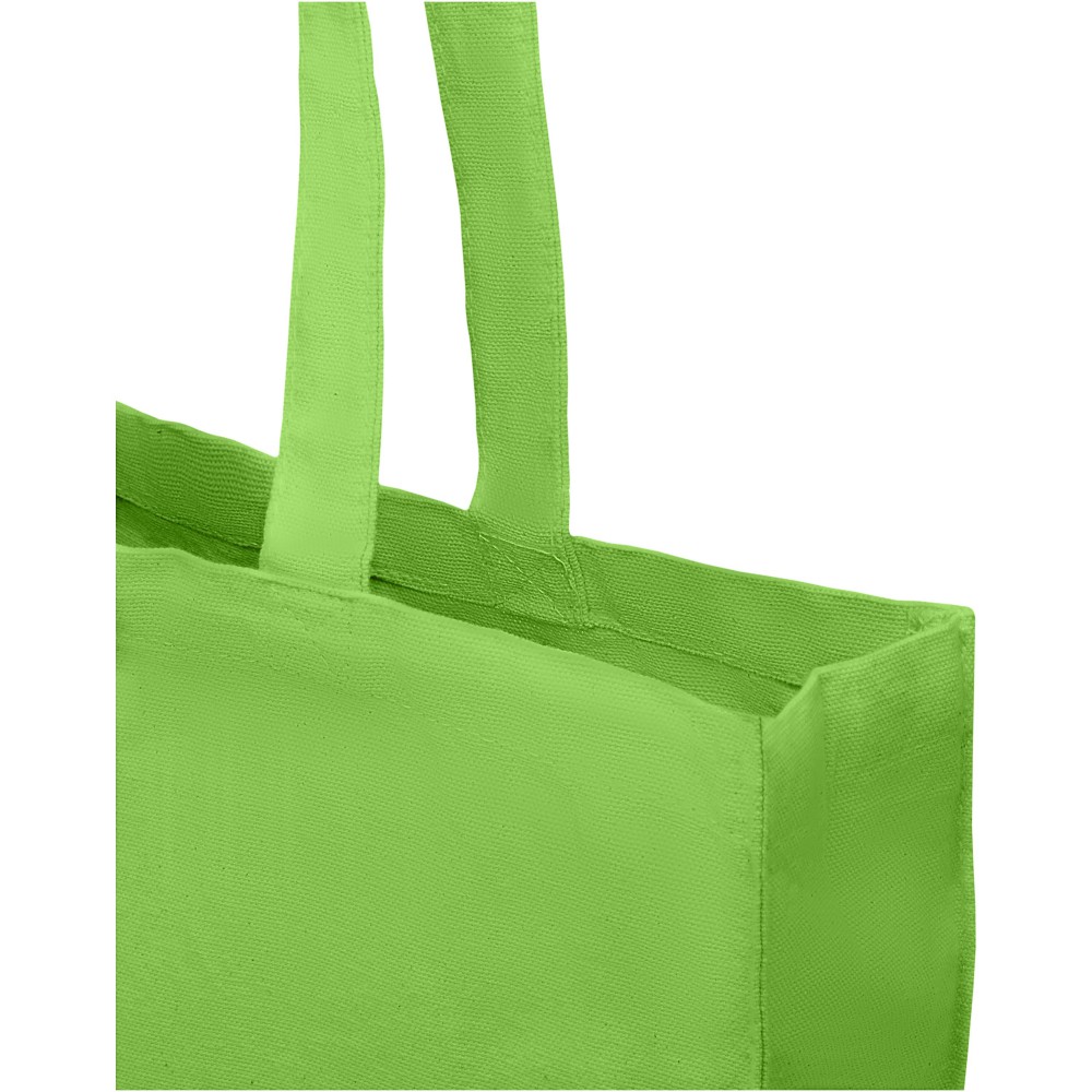 Nyitott tetejű táska háromszög alakú oldalbetéttel. A lehajtható fülek magassága 31 cm. Emblémázás: Szitanyomás