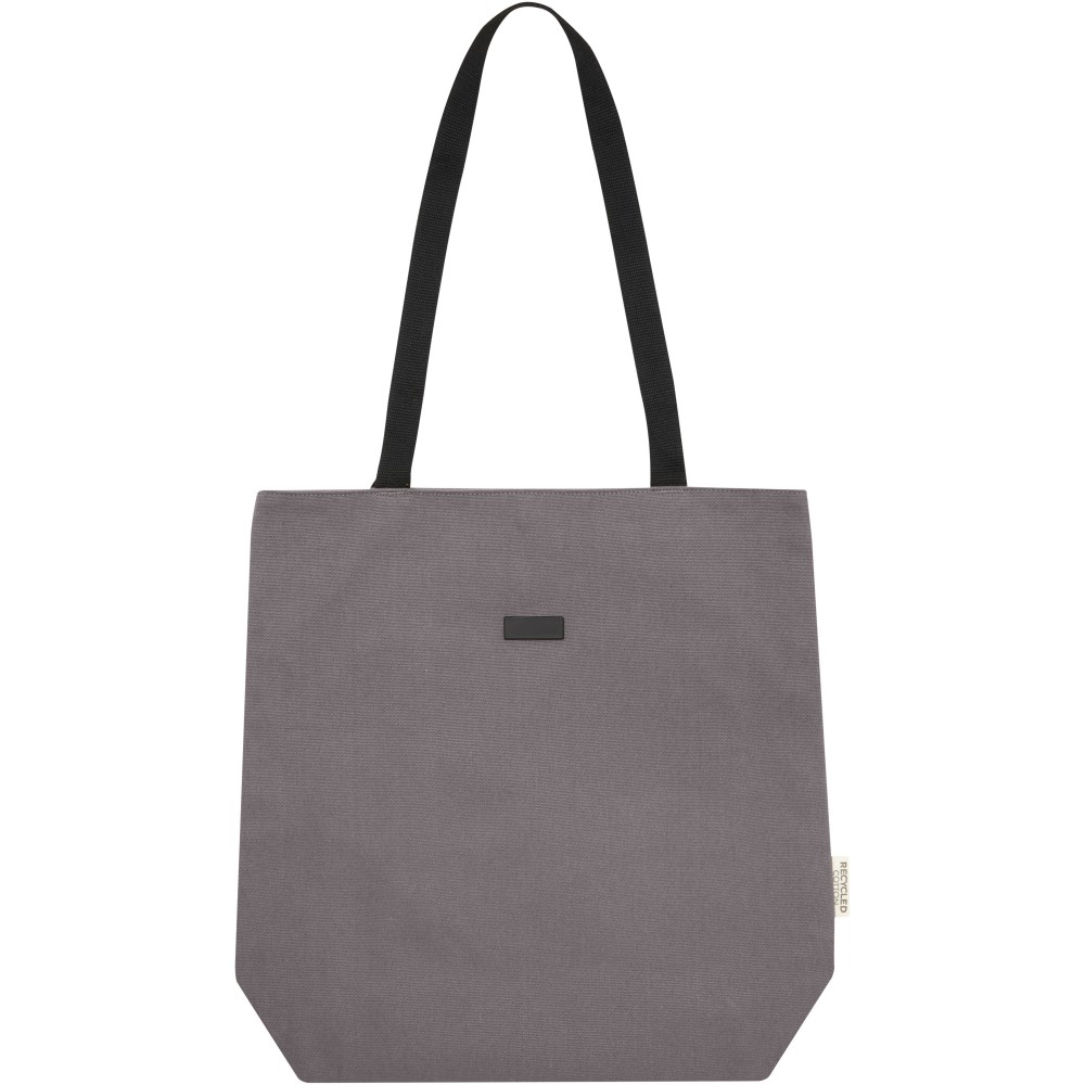 A táska GRS tanúsítvánnyal rendelkező újrahasznosított vászonból és GRS tanúsítvánnyal rendelkező RPET béléssel készült. Ez a sokoldalú táska egy bélelt, 15 -os laptoprekesszel és két belső tartóval rendelkezik a telefon, a pénztárca vagy a kiegészítők számára, valamint könnyű gombos záródással és kényelmes pamut fogantyúkkal. Fémlapja gravírozható. Emblémázás: Szitanyomás