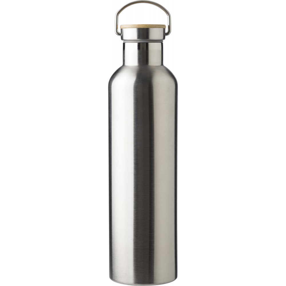 Duplafalú palack bambusz betéttel a kupakon. Rozsdamentes acél. Nagy űrtartalmú palack: 1L. Emblémázás: Gravírozás, Tamponnyomás