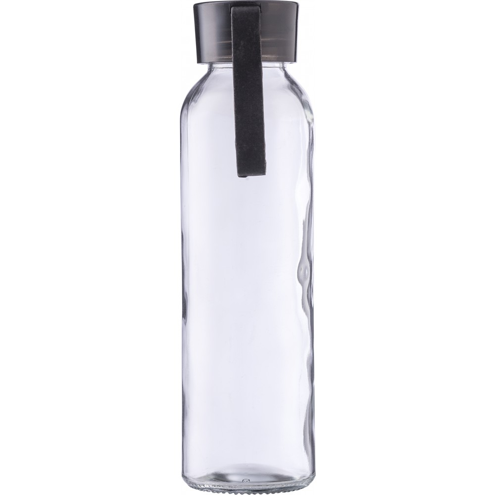 Üveg vizespalack színes kupakkal és pánttal. Csomagolása kraft papírdoboz. Űrtartalom: 500 ml. Emblémázás: Bögredekor