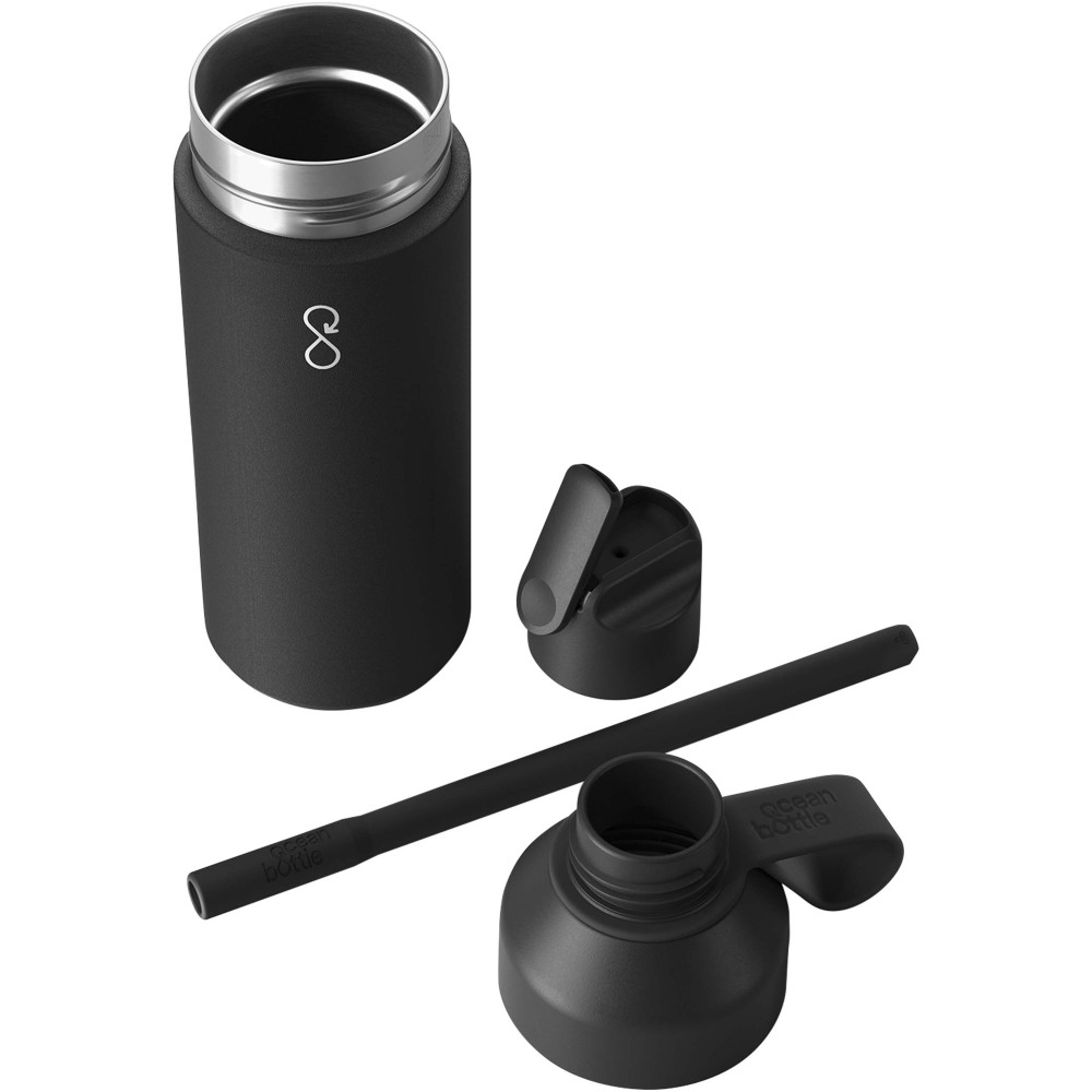 Az Ocean Bottle GO 500 ml-es palack dupla falú szigeteléssel rendelkezik, amely akár tizennyolc órán keresztül hidegen tartja az italokat, és kettős nyitási funkcióval van ellátva, ami tökéletesen alkalmassá teszi a mindennapi használatra. A palack szivárgásmentes kupakkal rendelkezik, és könnyű hozzáférést biztosít a töltéshez, tisztításhoz és jég hozzáadásához. A GO palack az eredeti Ocean Bottle legjobb tulajdonságait ötvözi, de sportosabb dizájnnal rendelkezik, így egy kézzel is ihat belőle. Minden Ocean Bottle teljesen szénsemleges és 1000 műanyag palack összegyűjtésével járul hozzá a part menti közösségek megélhetésének javításához. A palack 90%-ban újrahasznosított rozsdamentes acélból és más újrahasznosított anyagokból készült. A szilikon szívószál miatt a GO palack csak hideg italokhoz használható. Újrahasznosított karton ajándékdobozban szállítjuk. Emblémázás: Gravírozás