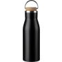 Újrahasznosított rozsdamentes acél palack bambusz kupakkal. Belül 304-es, kívül 201-es rozsdamentes acél. A palackon újrahasznosítást jelölő logó található. Űrtartalom: 500 ml. Emblémázás: Bögredekor, Gravírozás