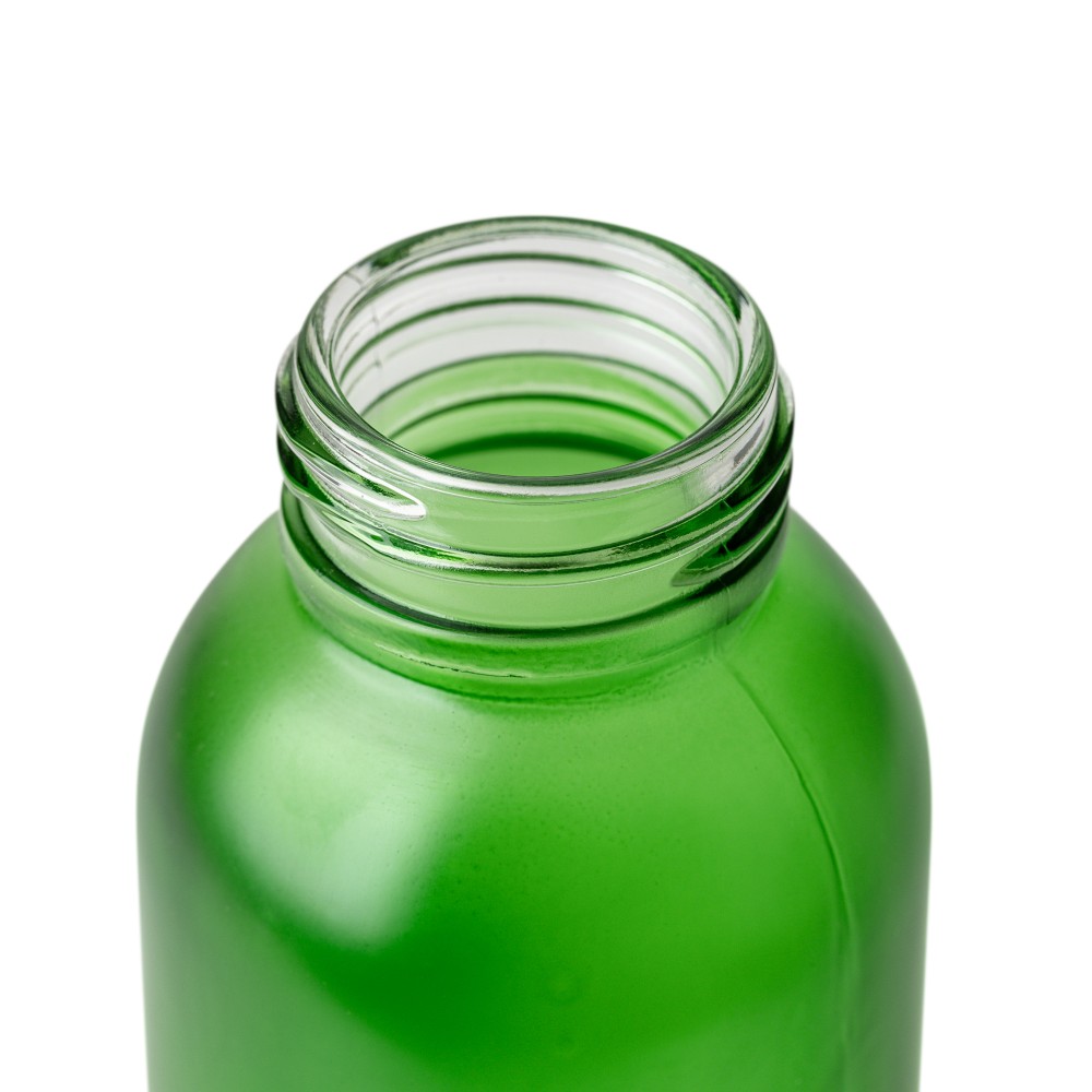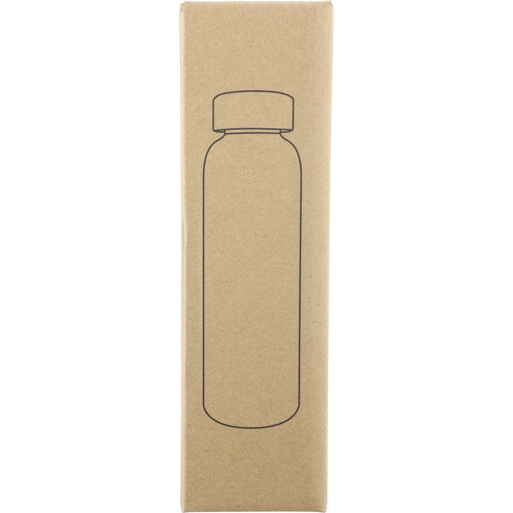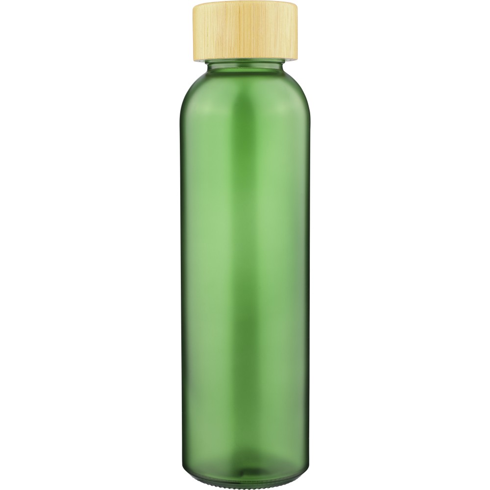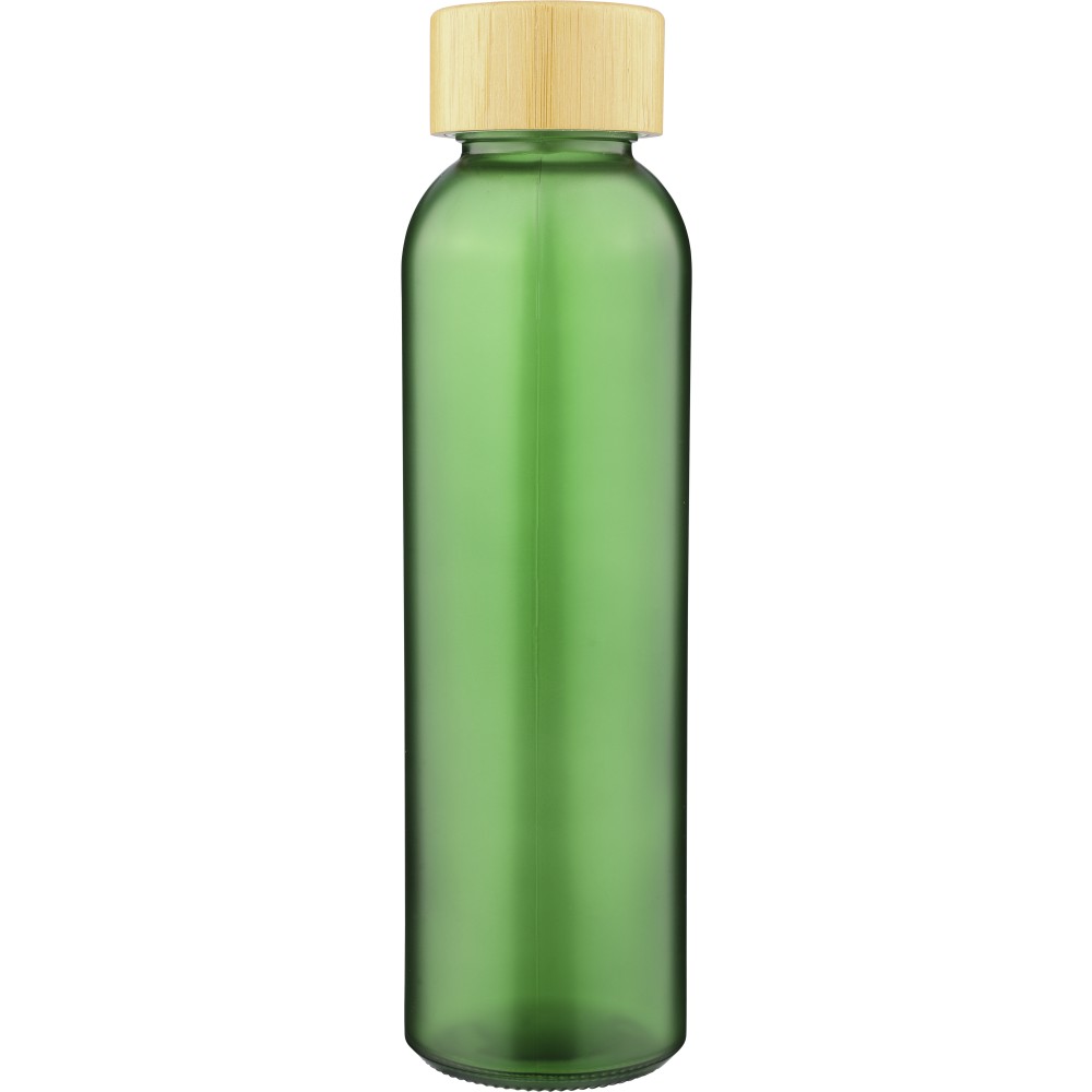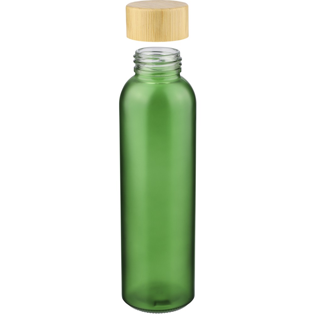 Üvegpalack 500 ml űrtartalommal, matt bevonatú testtel, bambusz csavaros kupak PP belső résszel. Nátrium-kalcium üvegből készült, kizárólag hideg italokhoz használható. Darabonként barna kartondobozba csomagolva. Emblémázás: Bögredekor