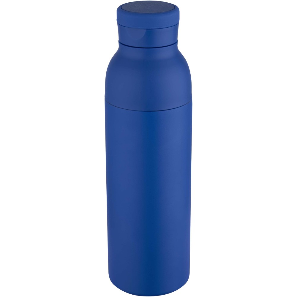 RCS tanúsítvánnyal rendelkező rozsdamentes acélból készült, duplafalú, vákuumszigetelt palack, amelynek fedelén egy diszkrét, beépített szilikon fogantyú található. Az italokat 48 órán át hidegen, vagy akár 12 órán keresztül melegen tartja. A két részből álló konstrukció megkönnyíti a tisztítást, míg a tartós porszórt bevonat és a belső rézszigetelés hosszú élettartamot és kiváló hőtartást biztosít. A terméket újrahasznosított kartonból készült ajándékdobozban szállítjuk. Űrtartalma: 650 ml. Emblémázás: Bögredekor