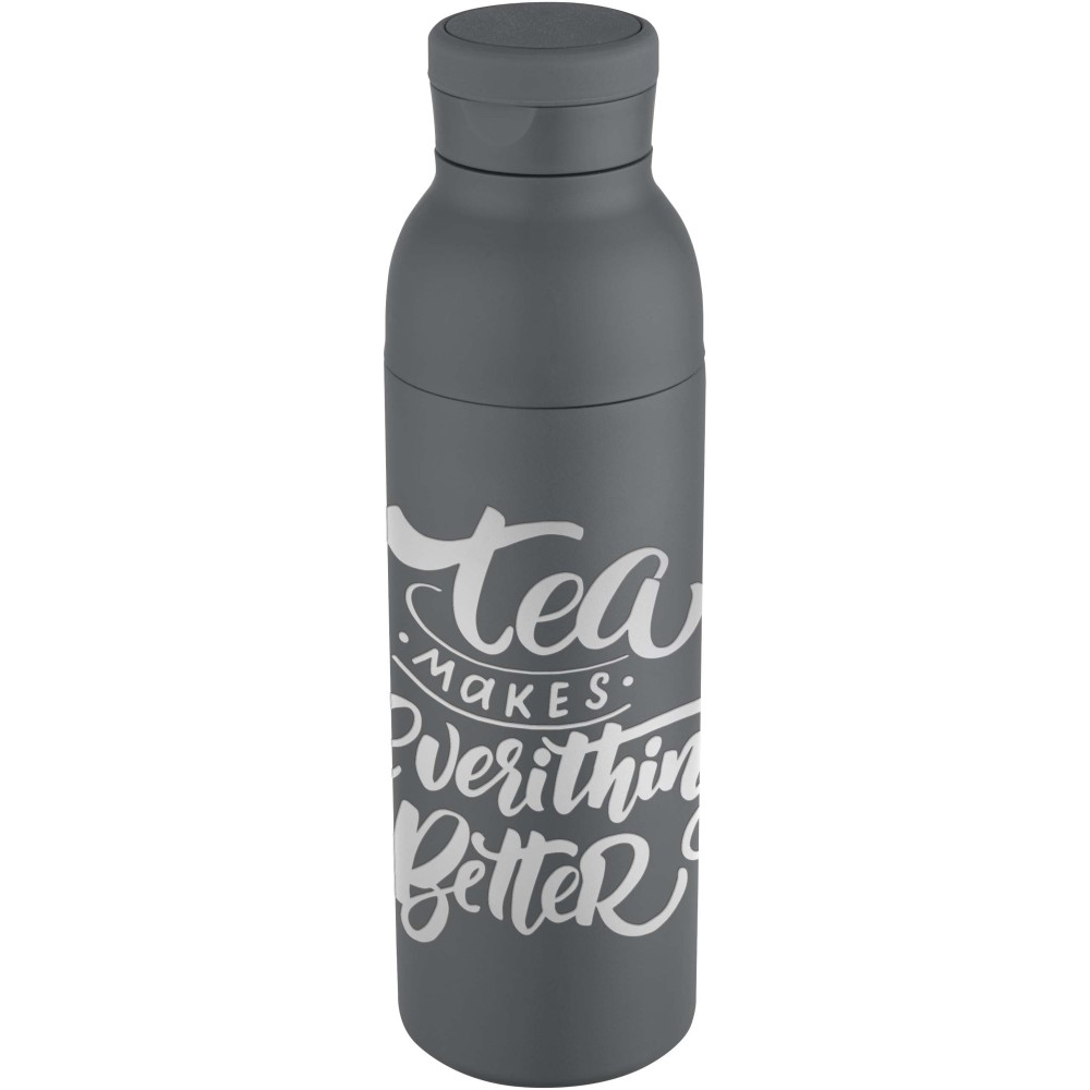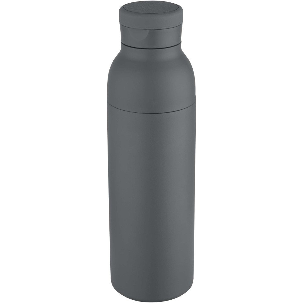 RCS tanúsítvánnyal rendelkező rozsdamentes acélból készült, duplafalú, vákuumszigetelt palack, amelynek fedelén egy diszkrét, beépített szilikon fogantyú található. Az italokat 48 órán át hidegen, vagy akár 12 órán keresztül melegen tartja. A két részből álló konstrukció megkönnyíti a tisztítást, míg a tartós porszórt bevonat és a belső rézszigetelés hosszú élettartamot és kiváló hőtartást biztosít. A terméket újrahasznosított kartonból készült ajándékdobozban szállítjuk. Űrtartalma: 650 ml. Emblémázás: Bögredekor